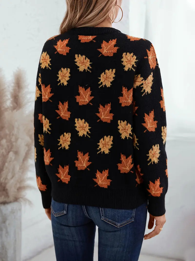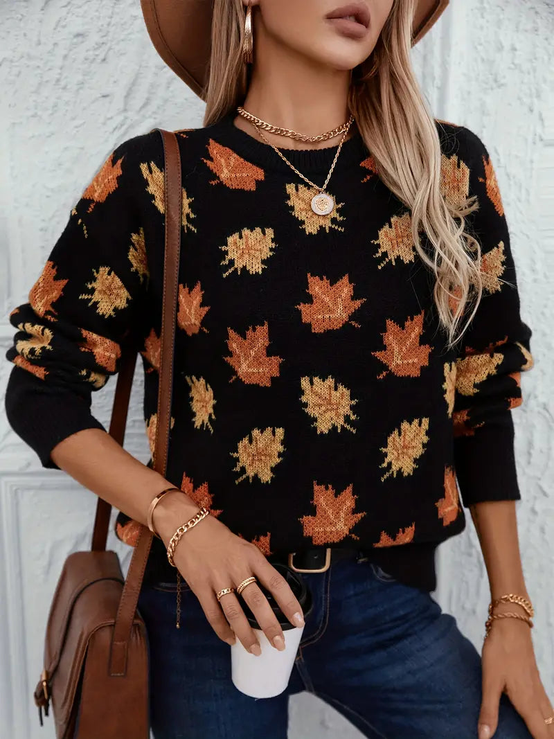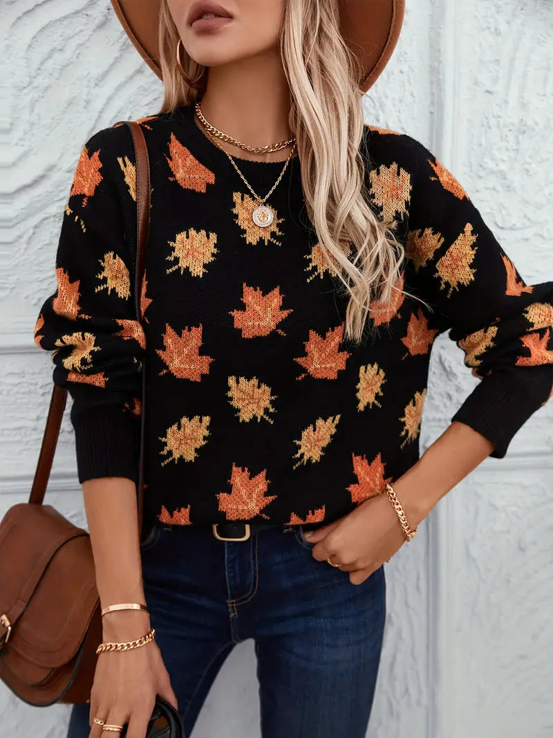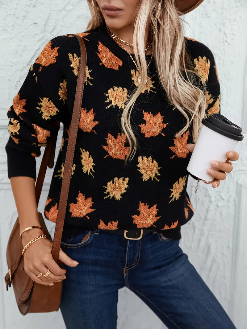 Genießen Sie die Schönheit des Herbstes mit dem Autumn Maple Leaf Print Pullover mit Rundhalsausschnitt. Dieser lässige Strickpullover aus 100 % Polyester fühlt sich weich an und ist leicht dehnbar - für ganztägigen Tragekomfort. Der leuchtende Ahornblatt-Aufdruck verleiht ihm einen saisonalen Touch, während die lockere Passform und die langen Ärmel ihn perfekt zum Überziehen im Herbst und Winter machen. Kombinieren Sie ihn mit Ihrer Lieblingsjeans oder Leggings für einen entspannten, stilvollen Look. Dieser Pullover ist eine unverzichtbare Ergänzung Ihrer Garderobe für die kalte Jahreszeit.