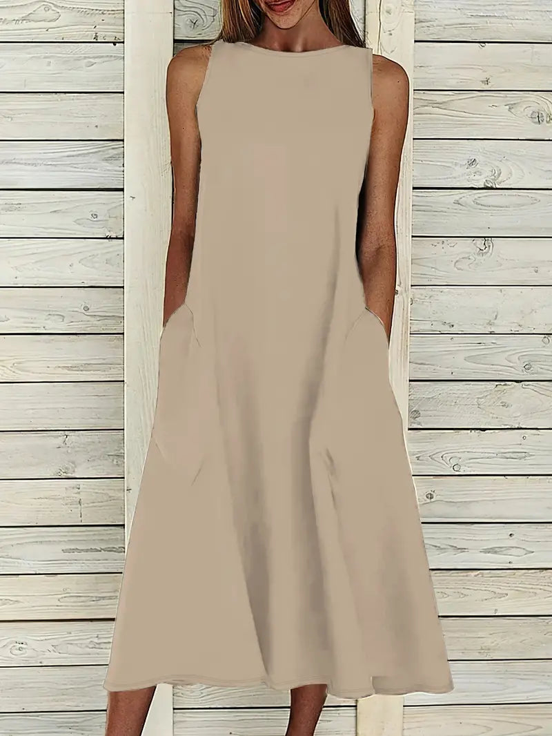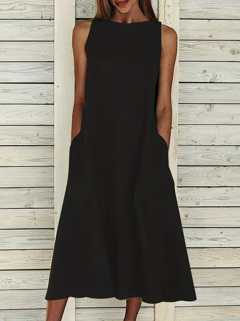 Alltäglicher Chic Ärmelloses Midikleid mit Taschen