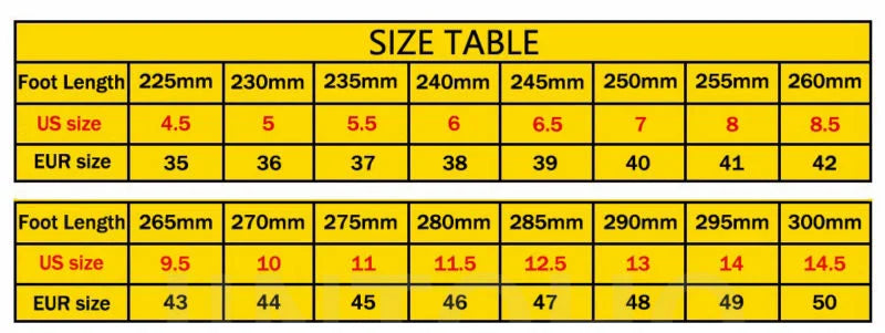 Größentabelle für Herrenschuhe