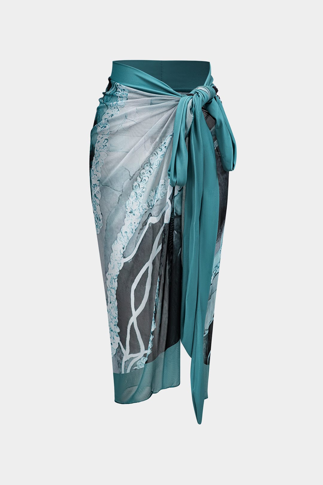Angela | Einteiler mit kunstvollem Muster und passendem Sarong für einen eleganten Beach-Look