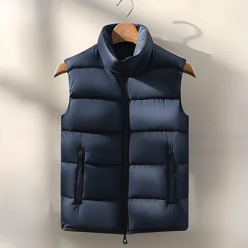 Diese stilvolle Pufferweste kombiniert wärmende Funktionalität mit einem modernen, sportlichen Look. Die leichte Wattierung speichert Wärme, ohne aufzutragen, und das ärmellose Design sorgt für maximale Bewegungsfreiheit. Der durchgehende Reißverschluss ermöglicht ein einfaches An und Ausziehen sowie eine individuell anpassbare Belüftung. Vielseitig kombinierbar, passt diese Weste perfekt über einen Pullover oder ein Hemd und ist ideal für kühle Tage, wechselhaftes Wetter oder einen aktiven Lebensstil.