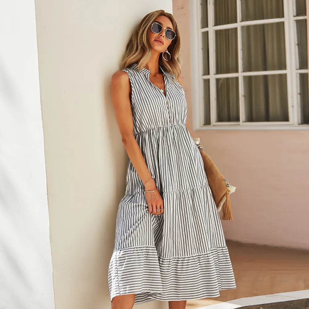 Ärmelloses Midikleid mit gestreiftem Hemd - Estela
