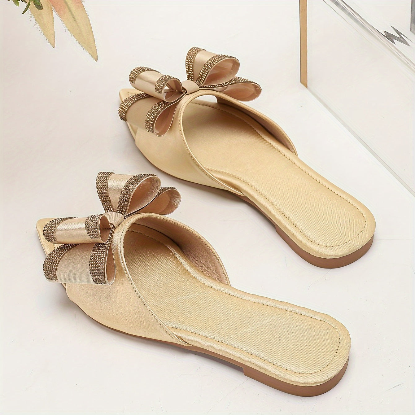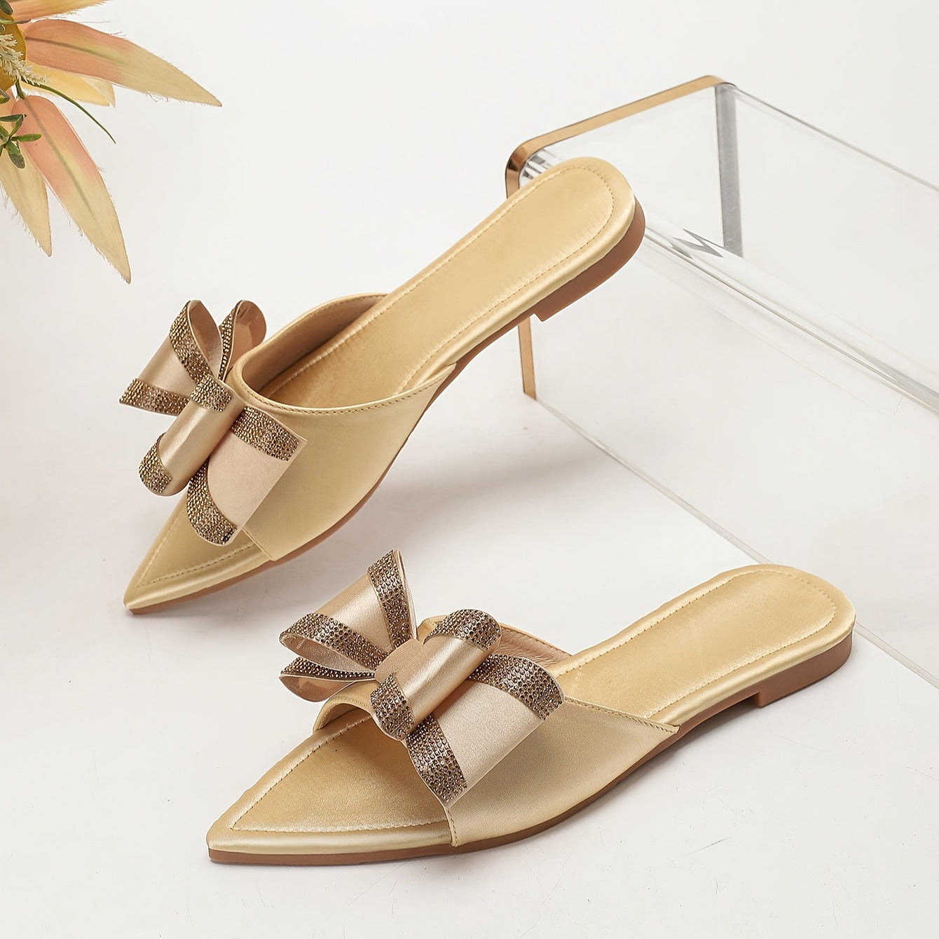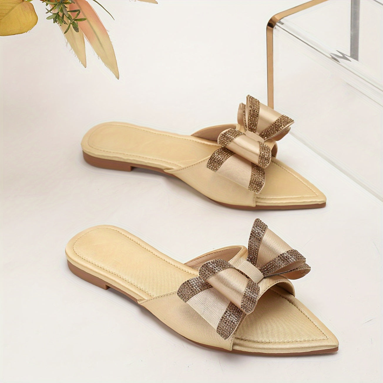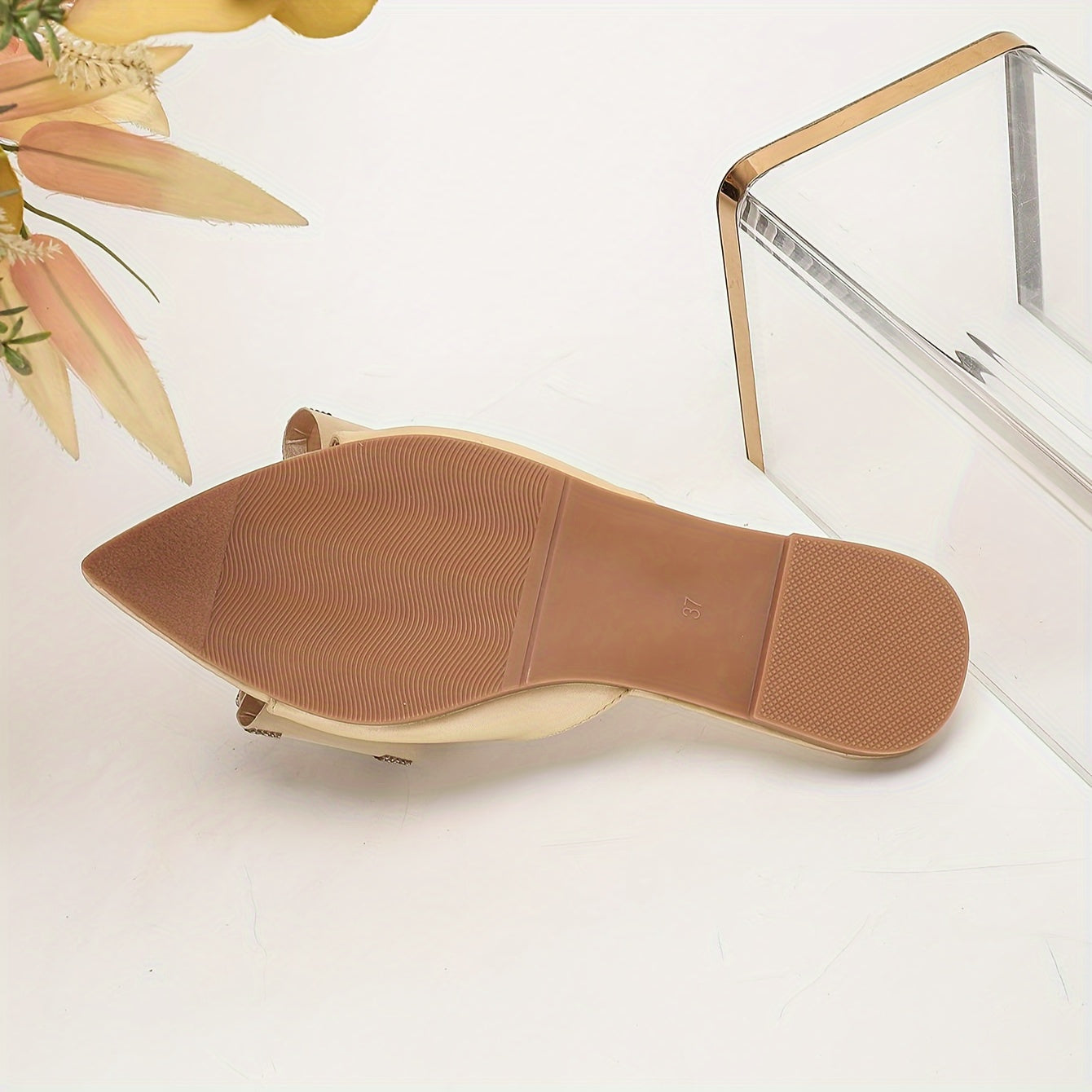 Atmungsaktiver Aprikosenfarbene spitz zulaufende Flats mit Schleife