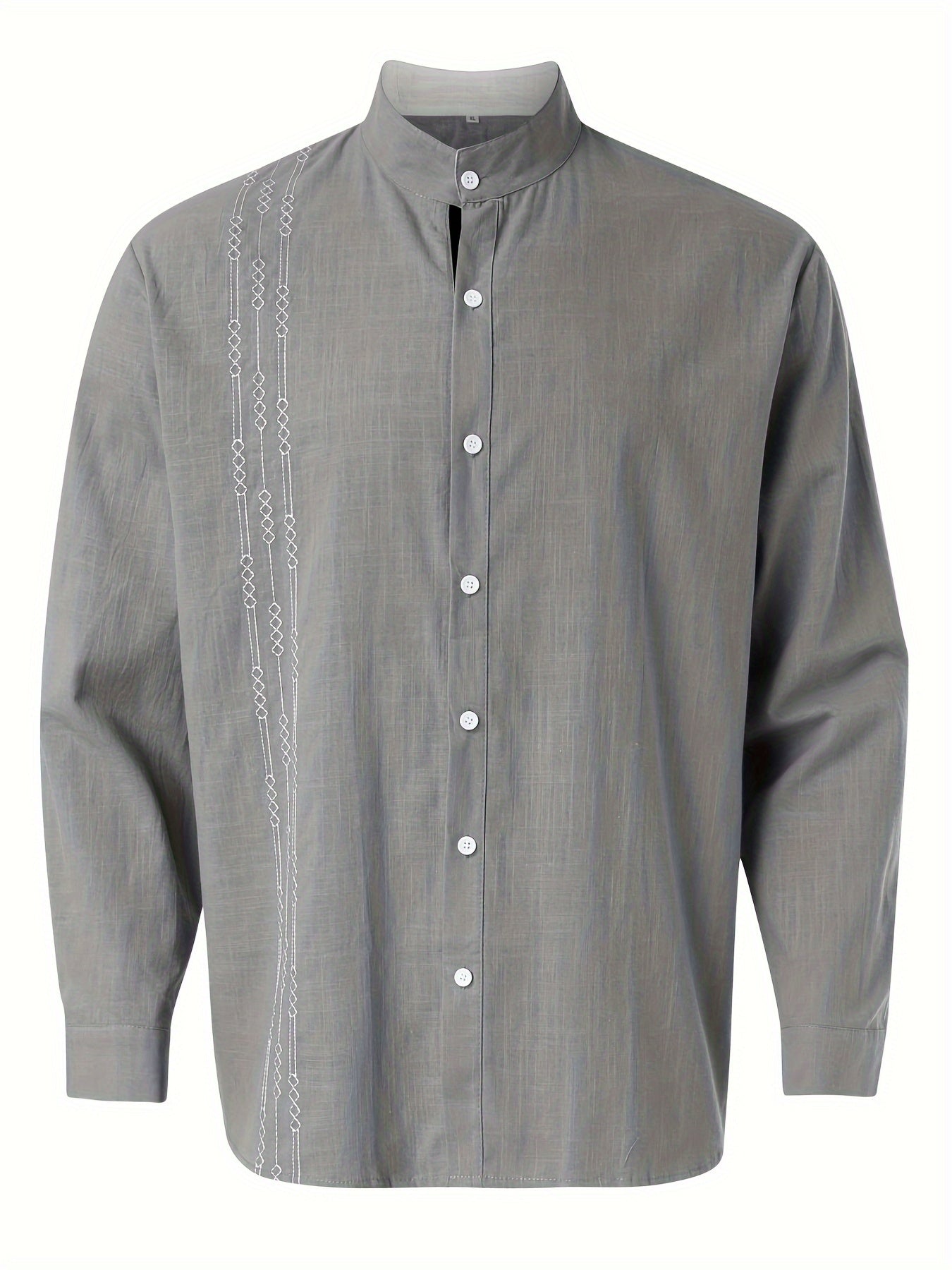 Baumwoll-Leinen Hemd – Langarm Freizeithemd mit Farbblock & Stickerei, Atmungsaktiv