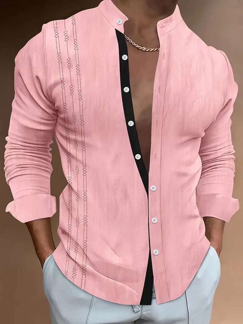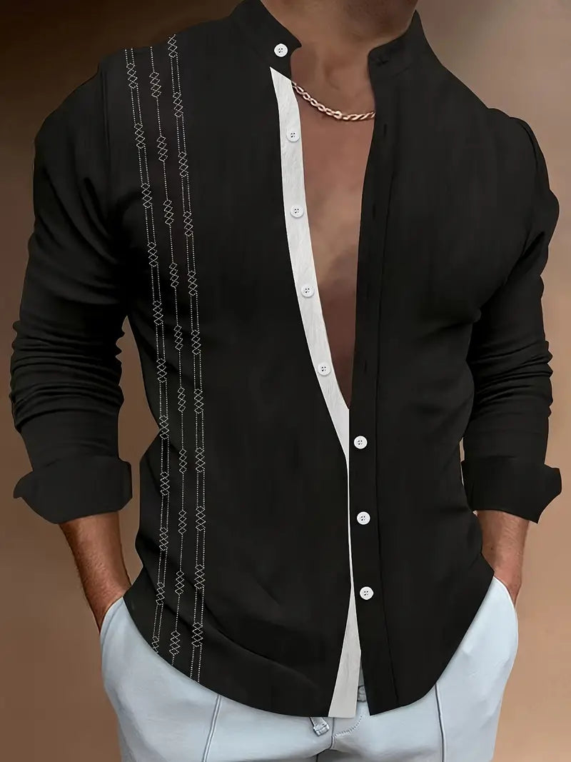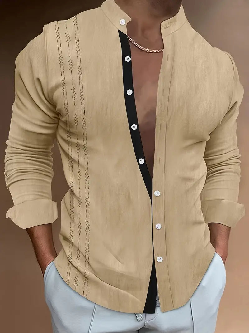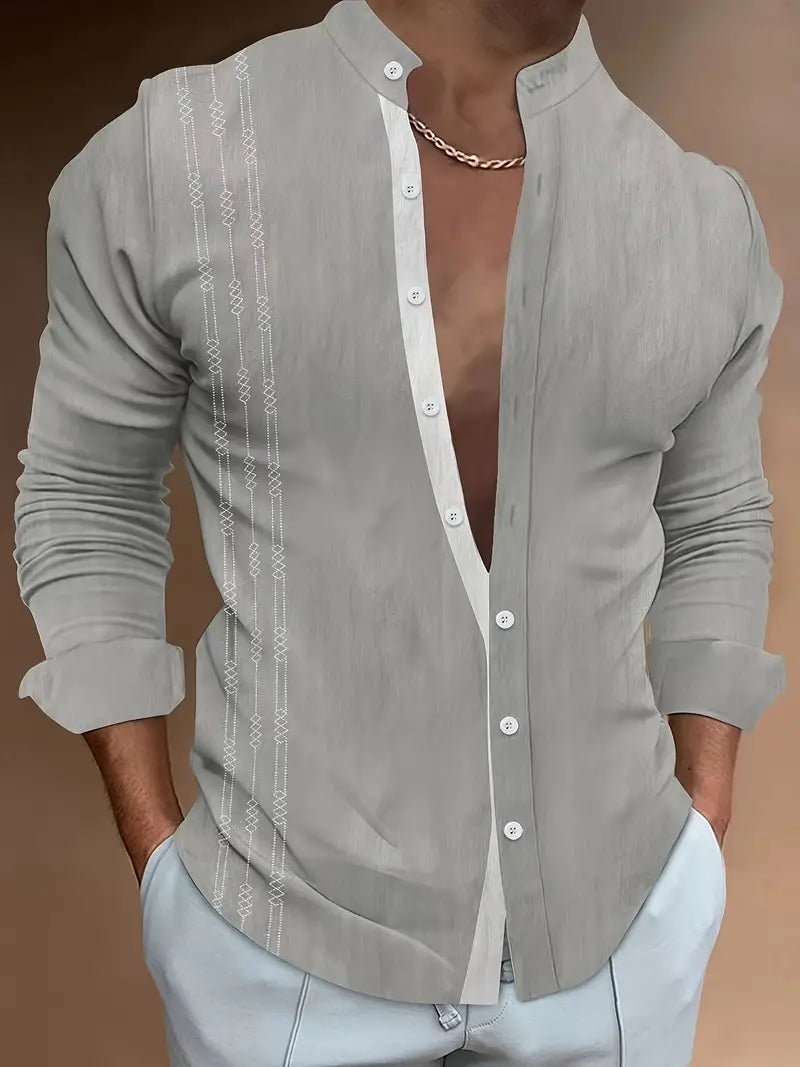 Das Simple Print Herrenhemd aus Baumwolle und Leinen mit langem Ärmel und Stehkragen ist eine vielseitige Ergänzung für Ihre Garderobe. Dieses Hemd aus einer bequemen Baumwoll-Leinen-Mischung eignet sich perfekt für die Frühlings- und Herbstsaison. Der Stehkragen verleiht ihm einen Hauch von Raffinesse, während der schlichte Druck für dezente Eleganz sorgt. Ganz gleich, ob Sie den Tag im Freien verbringen oder in den Urlaub fahren, dieses Hemd sorgt für Stil und Komfort. Peppen Sie Ihr Freizeitoutfit mit diesem zeitlosen Kleidungsstück auf - für einen raffinierten und dennoch entspannten Look.