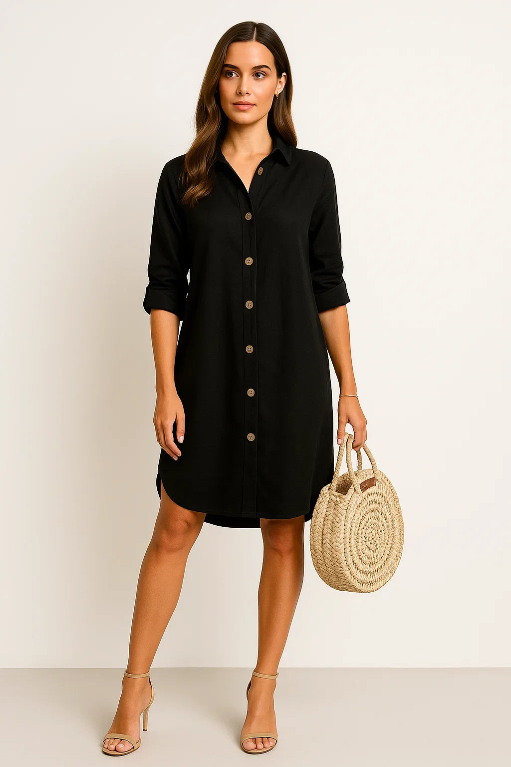 • Stilvolles Hemdblusenkleid: Die klassische Knopfleiste und der Kragen setzen dezente Akzente mit modischer Ausstrahlung.