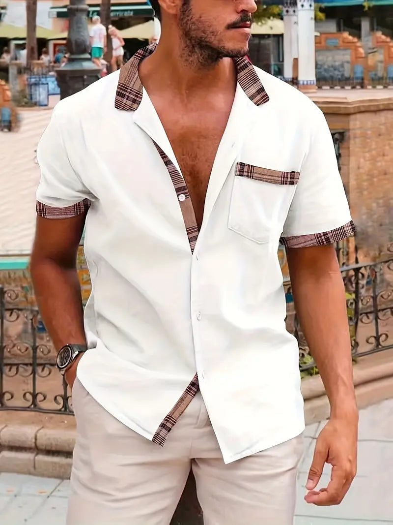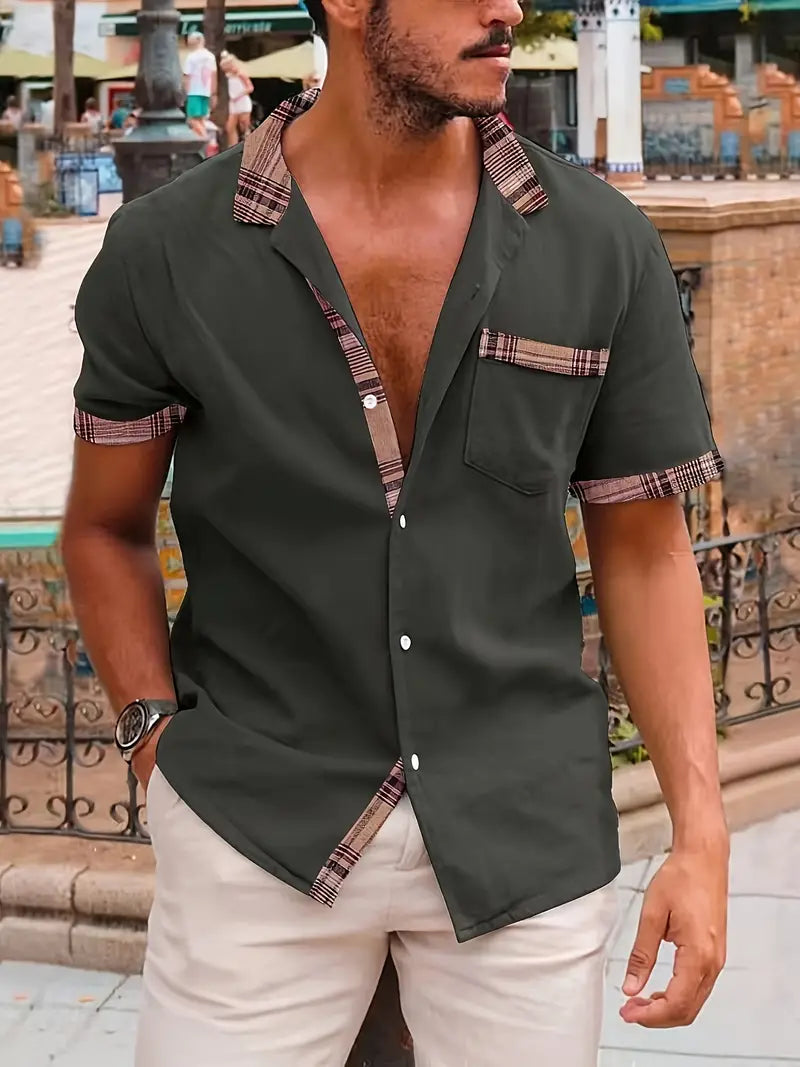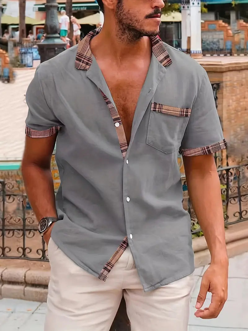 Unser kariertes Kurzarmhemd aus Baumwolle und Leinen für Herren ist die perfekte Wahl für Ihren Sommerurlaub im Freien. Dieses Hemd aus einer Mischung aus Baumwolle und Leinen bietet atmungsaktiven Komfort bei warmem Wetter. Mit einem stilvollen Reverskragen und einer Brusttasche kombiniert es Funktionalität mit einem Hauch von Raffinesse. Das Karomuster verleiht Ihrem Ensemble einen zeitlosen Charme. Ob Sie neue Ziele erkunden oder am Strand entspannen, dieses Hemd sorgt dafür, dass Sie bei Ihren Sommerabenteuern kühl und stilvoll bleiben.