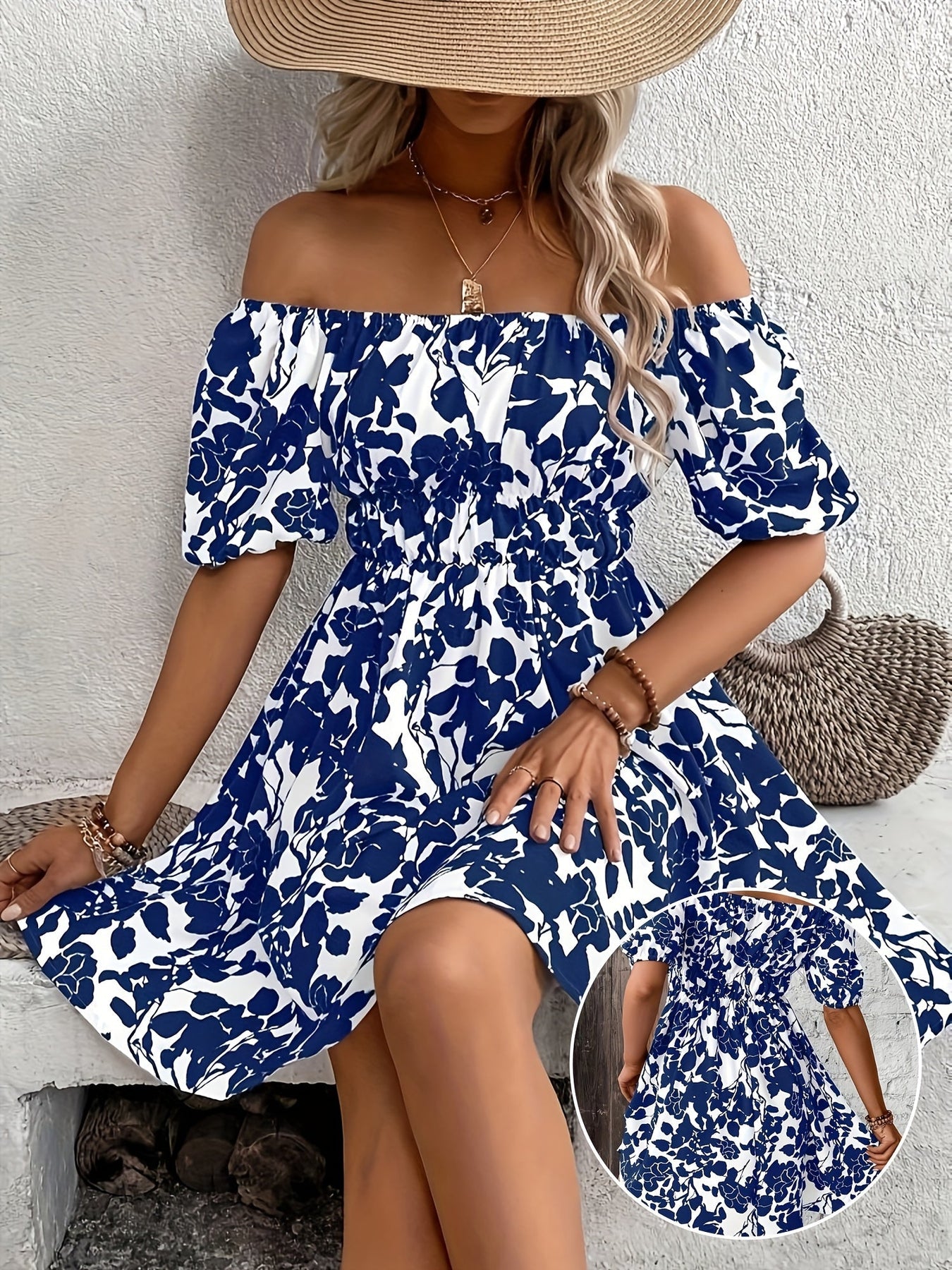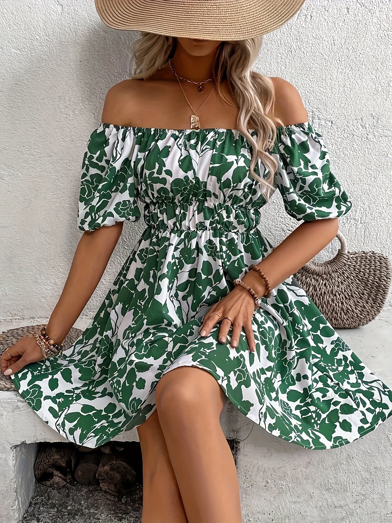 Dieses elegante Off-Shoulder Kleid mit schönem Blätterdruck ist die perfekte Ergänzung für deine Frühlings- und Sommergarderobe. Erhältlich in zwei lebendigen Farben – Grün und Marineblau – bietet dieses Kleid einen erfrischenden Look für sonnige Tage. Hergestellt aus hochwertigem Polyester ist es leicht, atmungsaktiv und angenehm für warme Sommertage.