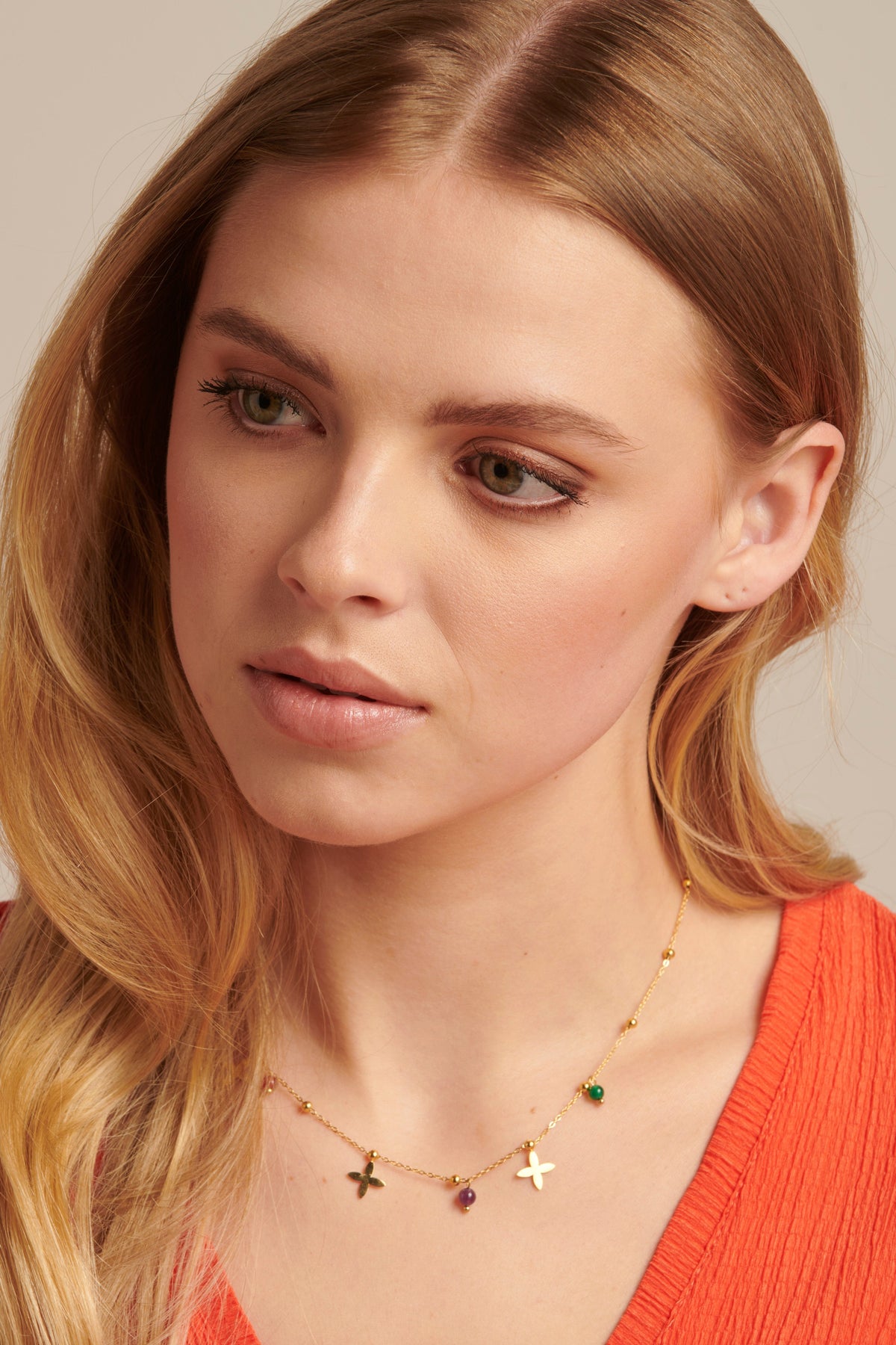 • Design: Blumenförmige Anhänger mit Quarzsteinen
