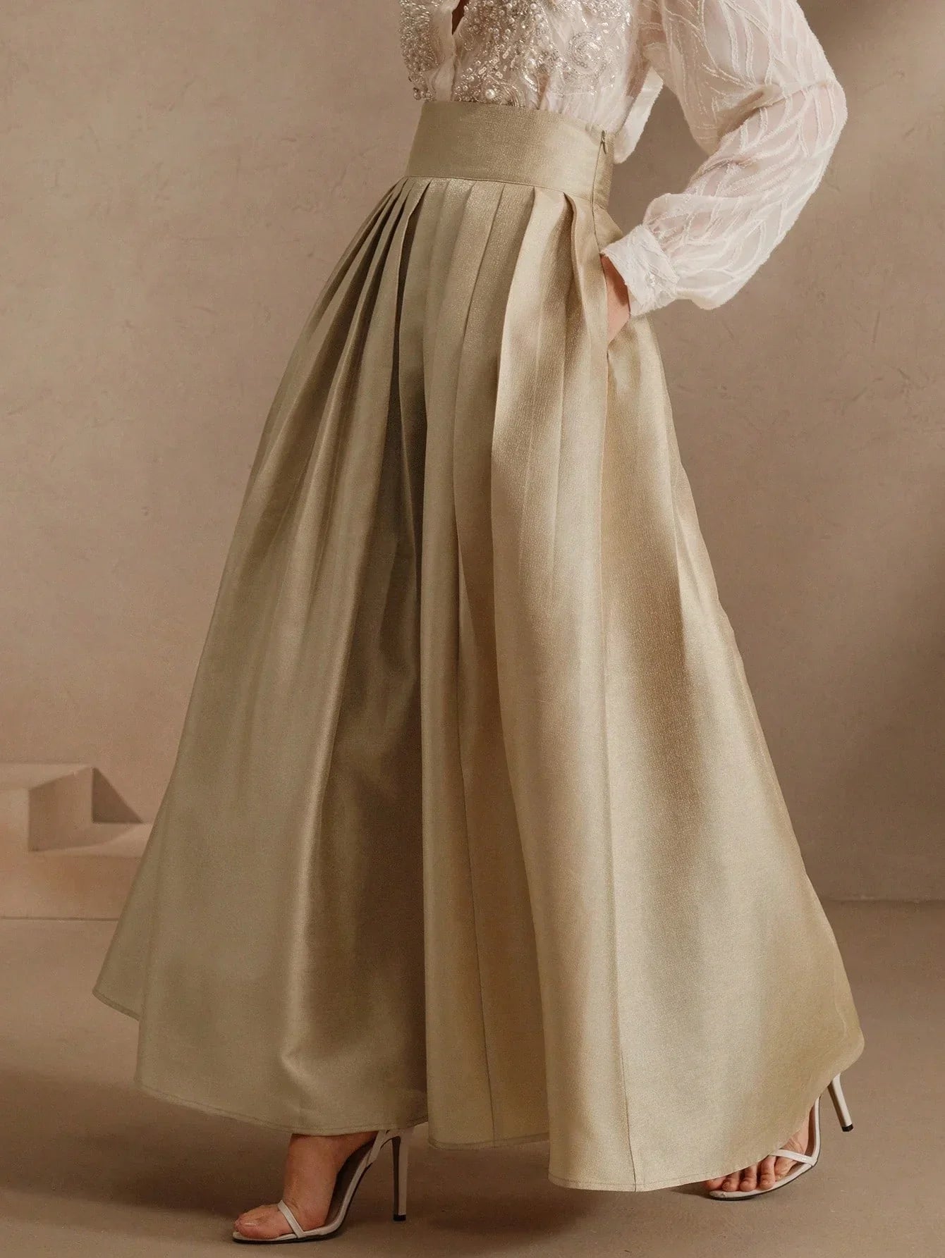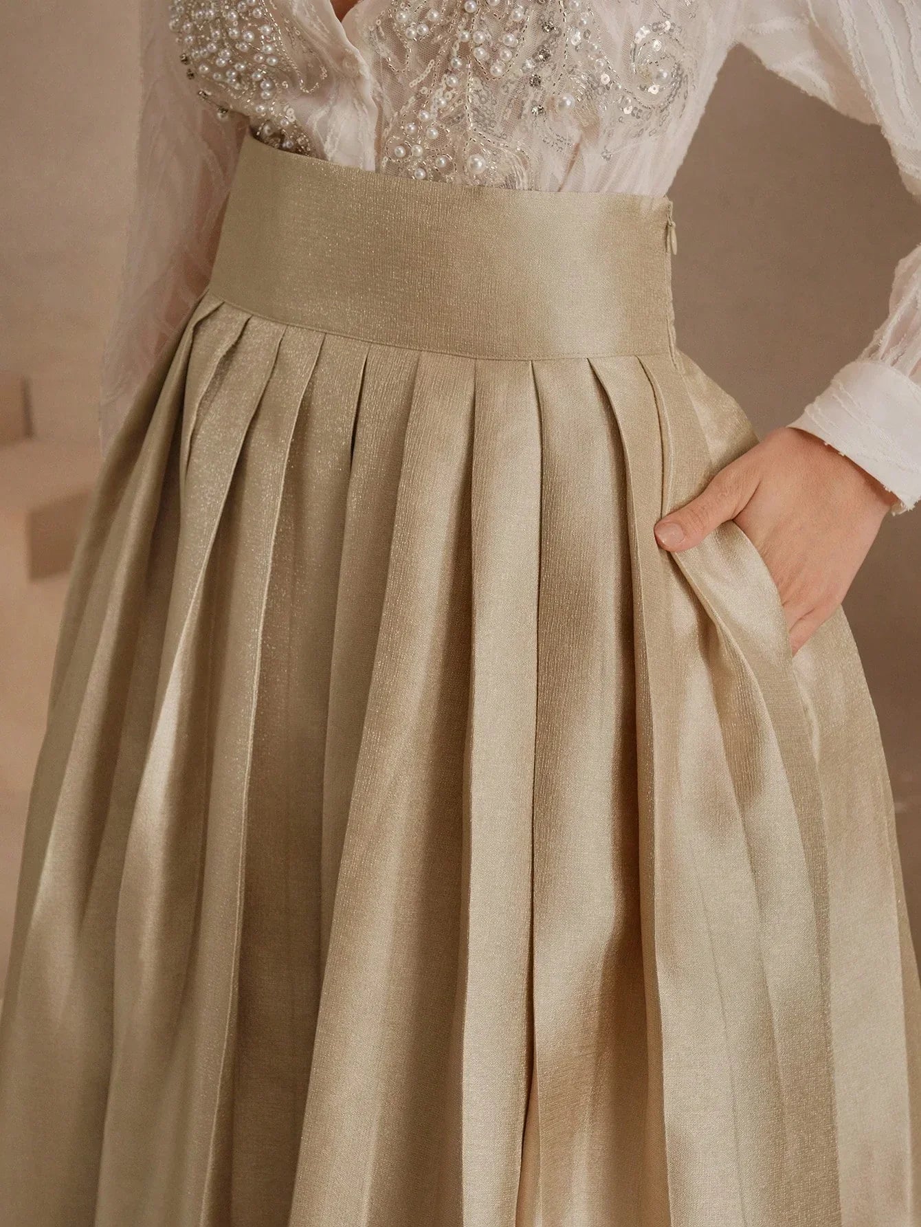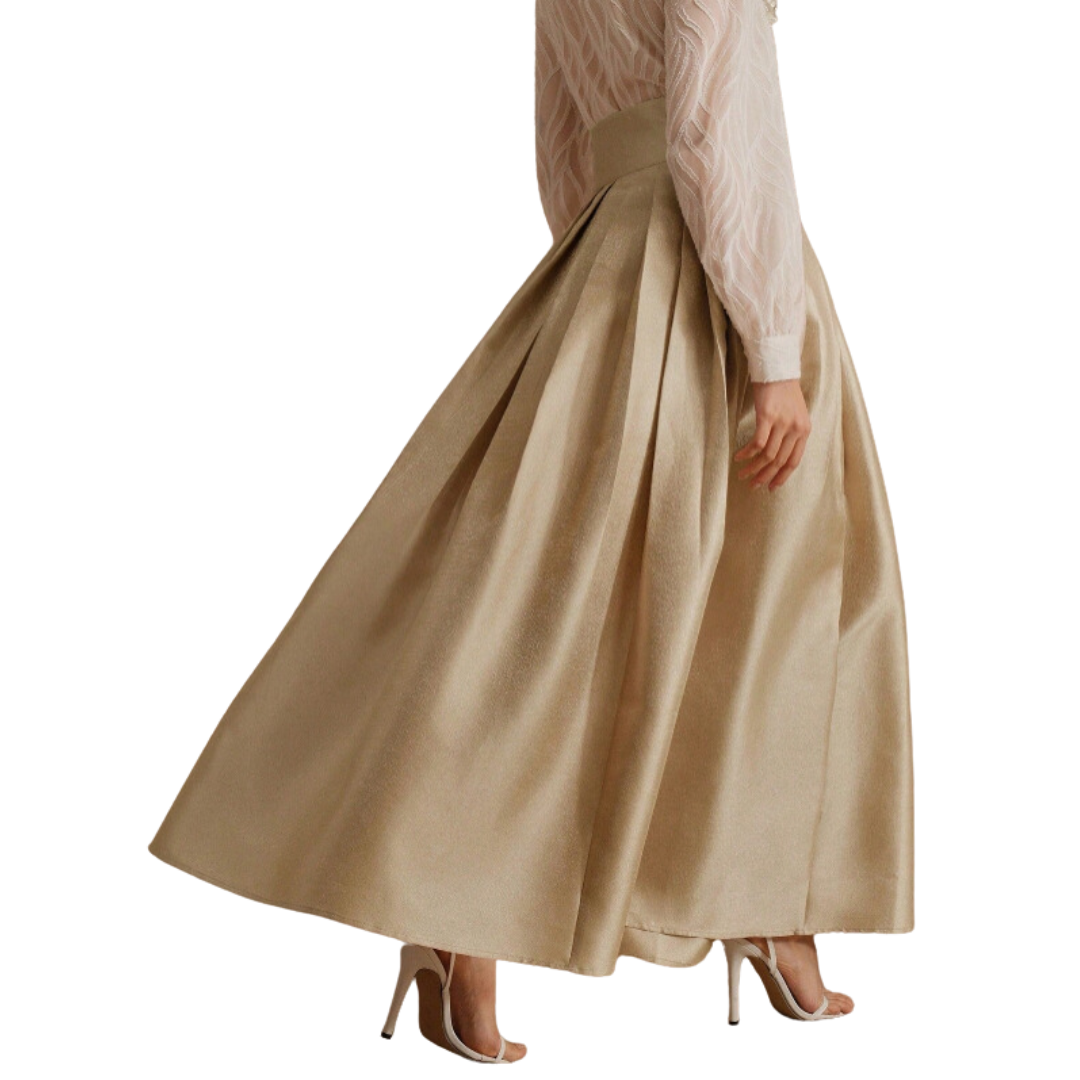 Der Isabella Regal Plissierter Rock verkörpert zeitlose Eleganz und königliche Raffinesse. Ideal für die Frau, die anmutige Bewegungen und mühelosen Glamour liebt, bietet dieser Rock: