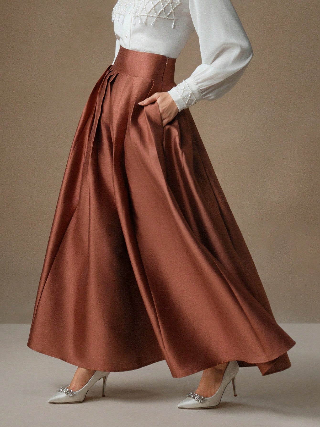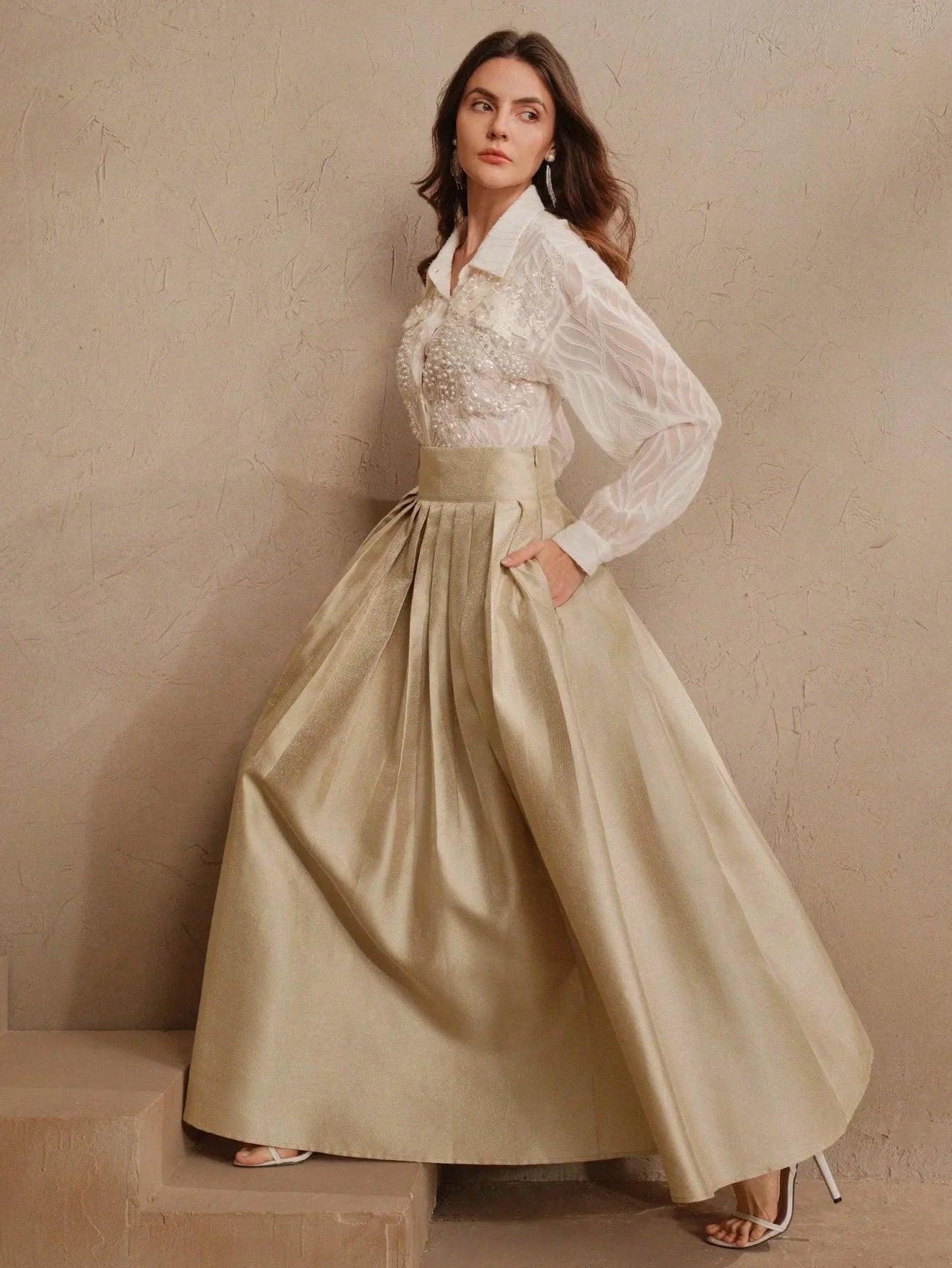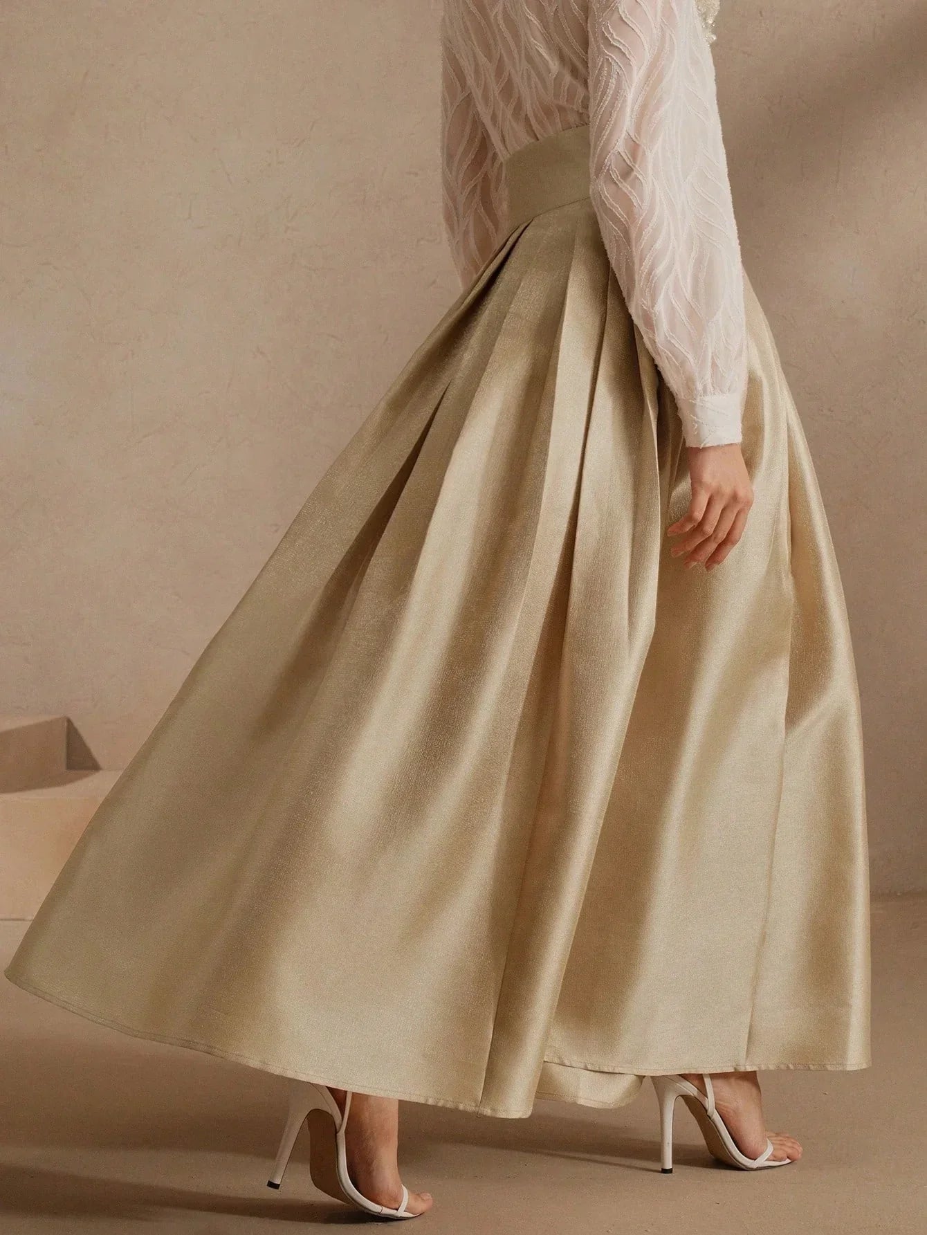 Der Isabella Regal Plissierter Rock verkörpert zeitlose Eleganz und königliche Raffinesse. Ideal für die Frau, die anmutige Bewegungen und mühelosen Glamour liebt, bietet dieser Rock: