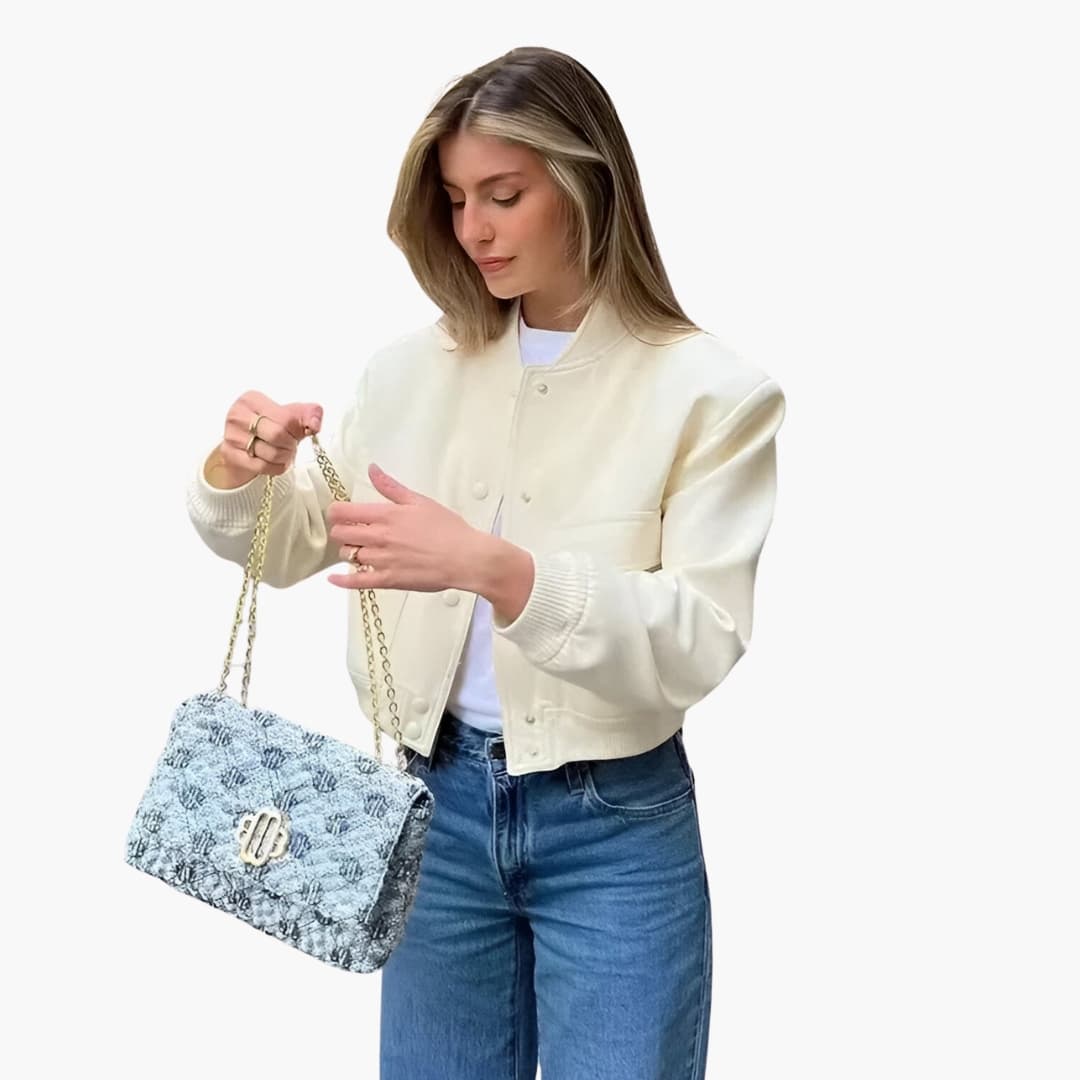 Damen kurze Bomberjacke mit Knöpfen und strukturiertem Rippbesatz