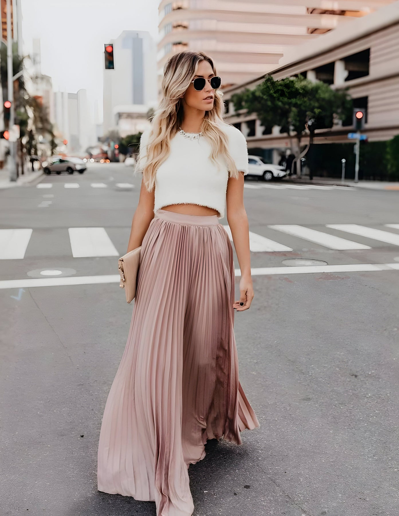 Der lange Rock für Damen ist der perfekte Begleiter für den Sommer. Hergestellt aus fließender Viskose, bietet er ein angenehmes Tragegefühl und maximale Bewegungsfreiheit. Der lockere A-Linien-Schnitt schmeichelt der Figur und sorgt für eine feminine Silhouette. Mit einem elastischen Bund und feinen Falten kombiniert dieser Rock Komfort mit Stil und eignet sich ideal für warme Tage.