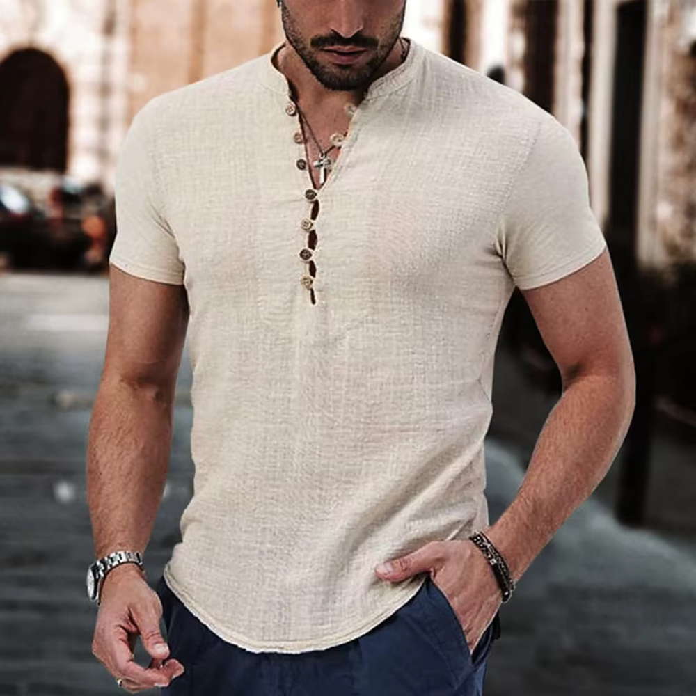 Das weiche, atmungsaktive Gewebe passt sich jeder Bewegung an – sei es beim City-Bummel, beim Date oder entspannt am Wochenende. Die leicht strukturierte Optik verleiht dem Shirt einen Hauch von Raffinesse.