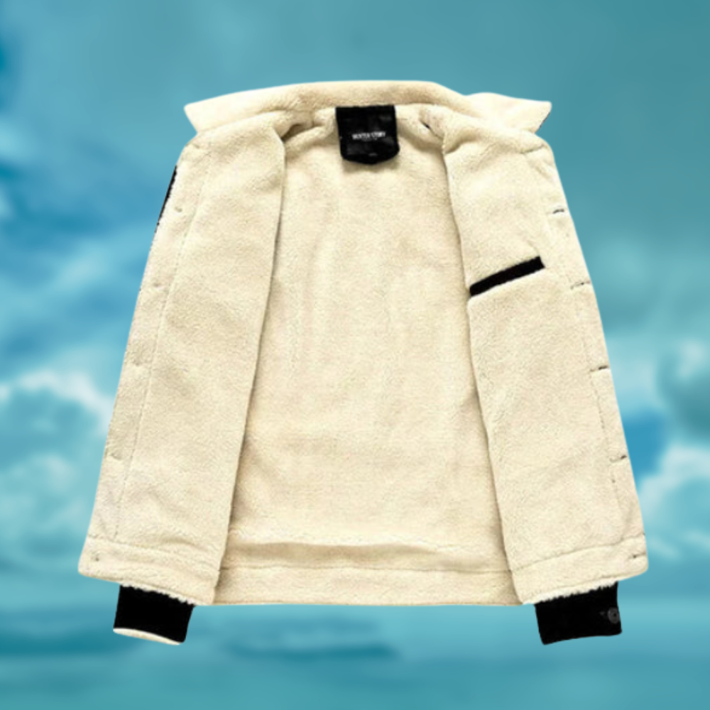 Dank der strukturierten Oberfläche wirkt die Jacke besonders hochwertig. Die Brusttaschen mit Patten und der klassische Kragen mit Lammfell-Optik unterstreichen den maskulinen Retro-Charakter. Die Jacke ist warm, aber nicht zu schwer – ideal für Alltag, Freizeit & Stadtbummel.