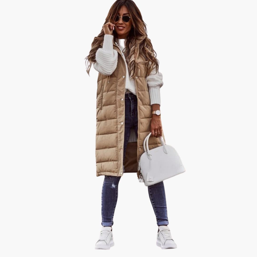 Die gesteppt lange Weste für Damen ist ein knielanges Kleidungsstück mit strukturierter Oberfläche und klarer Form. Sie eignet sich ideal zum Kombinieren, da sie zusätzlichen Schutz in kühleren Monaten bietet und sich mühelos über verschiedene Outfits tragen lässt. Entwickelt für Frauen, die Wert auf praktische Passform und funktionale Details legen.