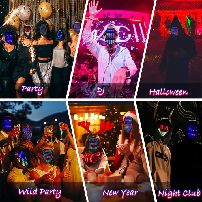 Mit 50 atemberaubenden Anzeigemustern können Sie mit dieser LED-Maske Ihre Stimmung und Ihre Kreativität zum Ausdruck bringen. Wechseln Sie in Sekundenschnelle zwischen verschiedenen Mustern - egal, ob Sie etwas Dezentes oder etwas Gewagtes wollen, Sie werden immer im Mittelpunkt der Aufmerksamkeit stehen.