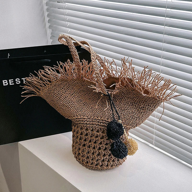 Große Strohtasche Damen – Handgefertigte Strandtasche Sommer Shopper