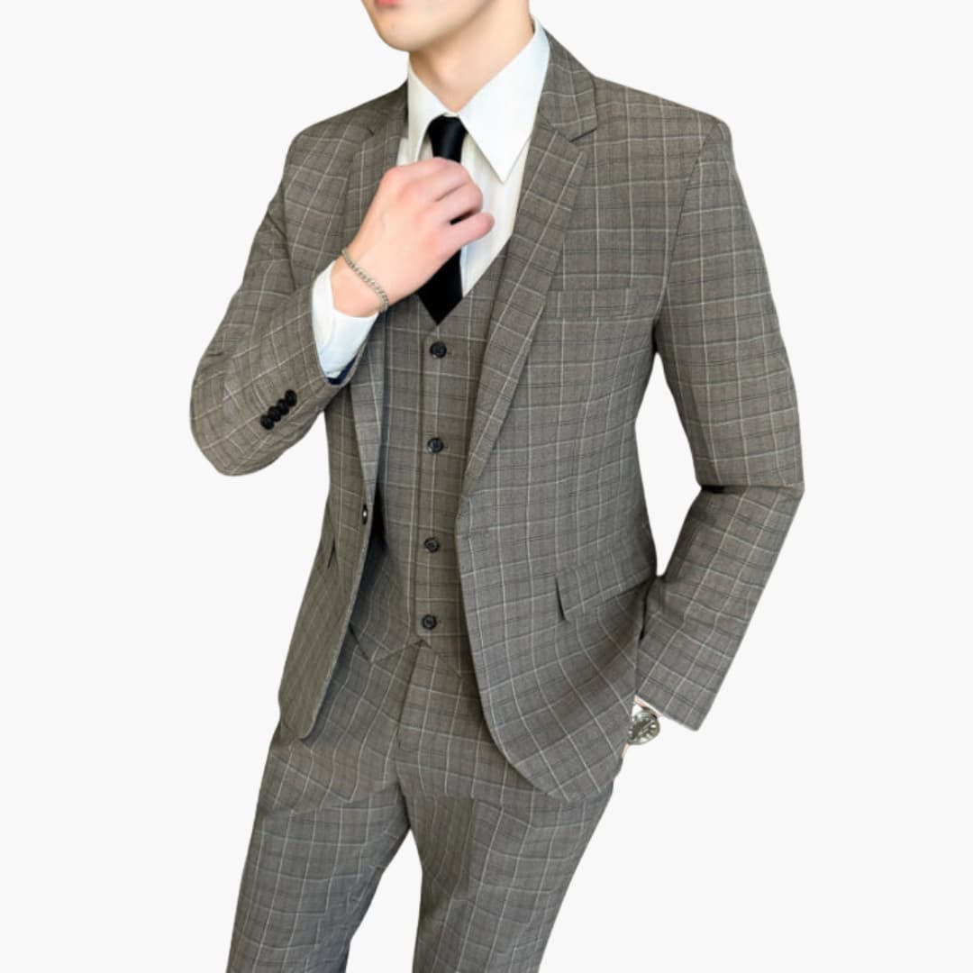 Herren Anzug dreiteilig mit kariertem Muster und langen Ärmeln