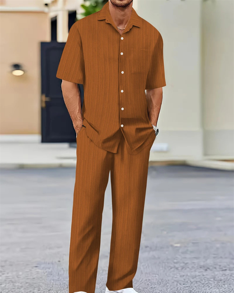 Herren Freizeit-Zweiteiler mit Kurzarm-Hemd und bequemer Hose