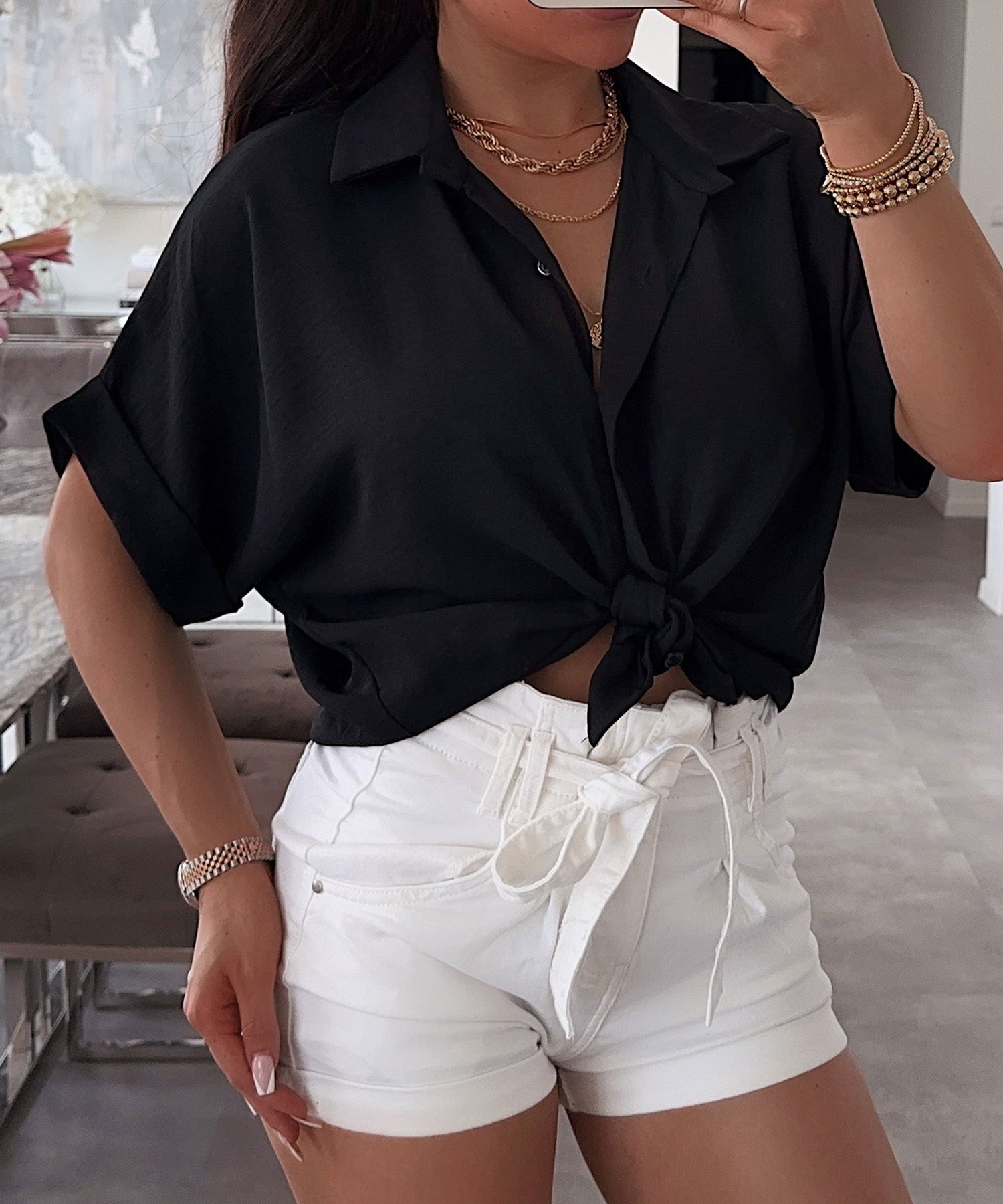 Dieses klassische schwarze T-Shirt bietet einen klaren, minimalistischen Look, der sich nahtlos in jede Garderobe einfügt. Perfekt für Freizeitoutfits, Lagenlooks oder gepflegte Alltagsstyles – ideal für Frauen, die zeitlose Basics mit modernem Flair schätzen.