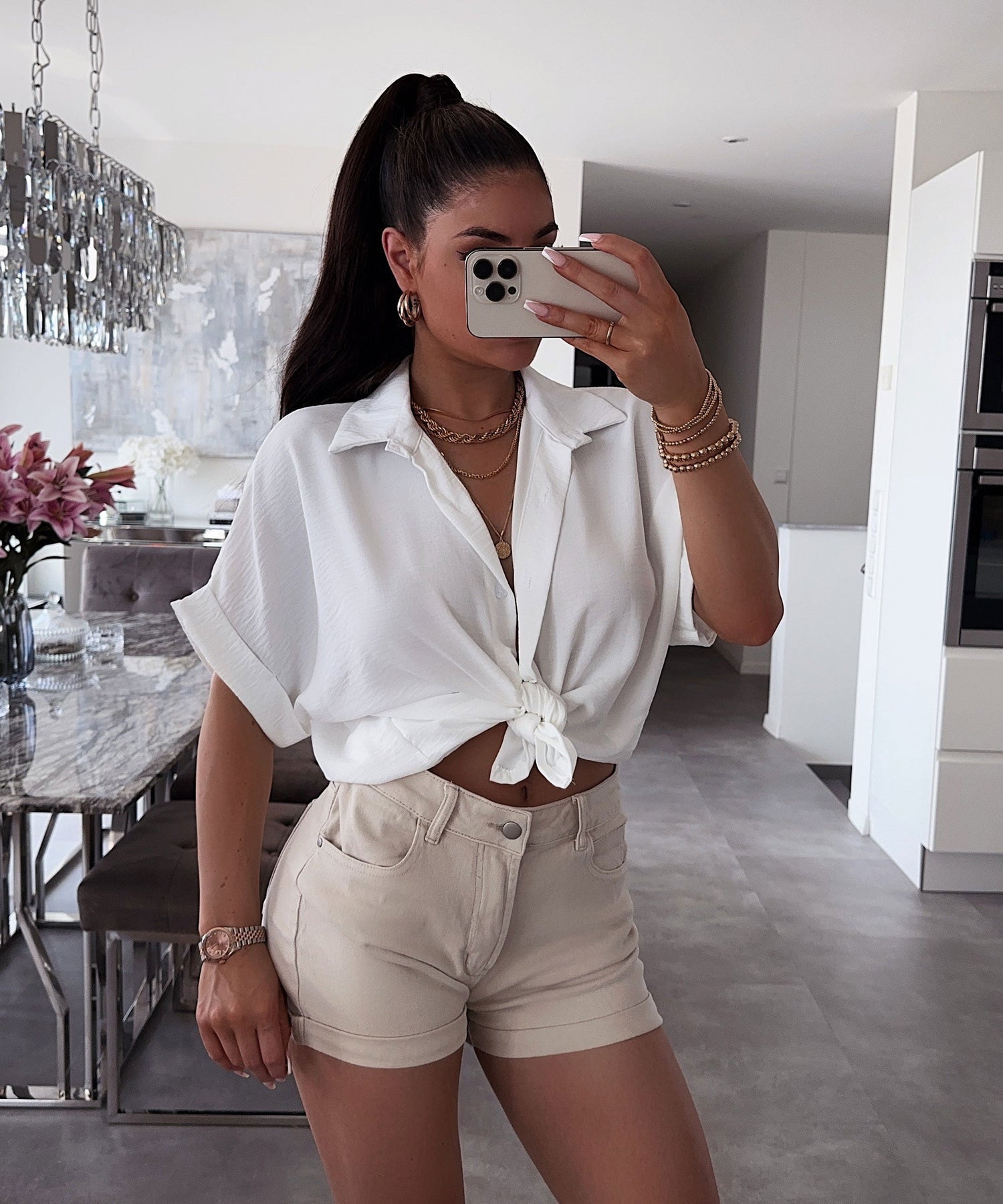 Dieses klassische weiße T-Shirt bietet einen klaren, minimalistischen Look, der sich perfekt für alle Stile eignet – von Freizeitoutfits bis hin zu eleganten Layering-Looks. Ideal für Alltagsbasics, Reiseoutfits oder gepflegte Casual-Styles – perfekt für Frauen, die zeitlose, leicht kombinierbare Mode lieben.
