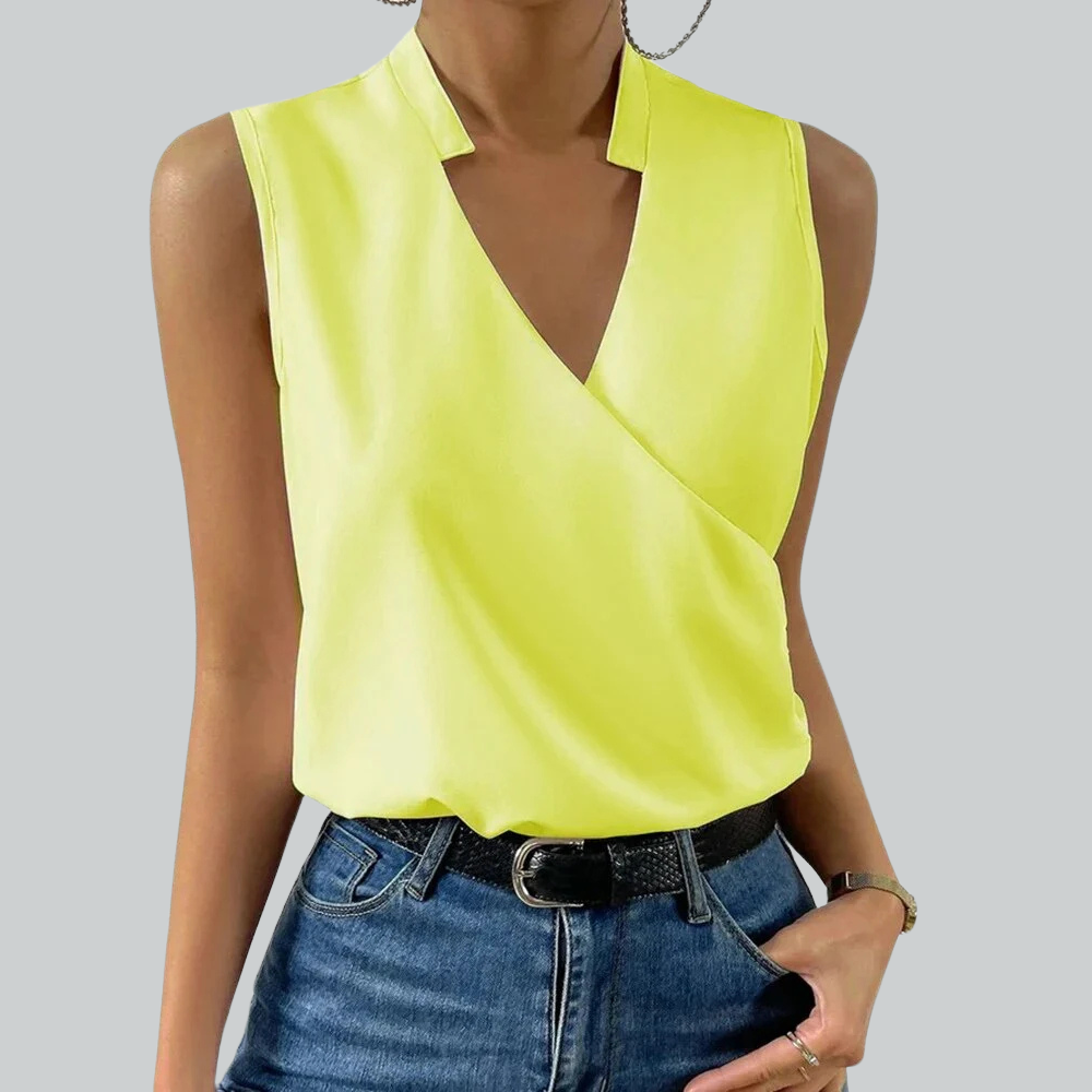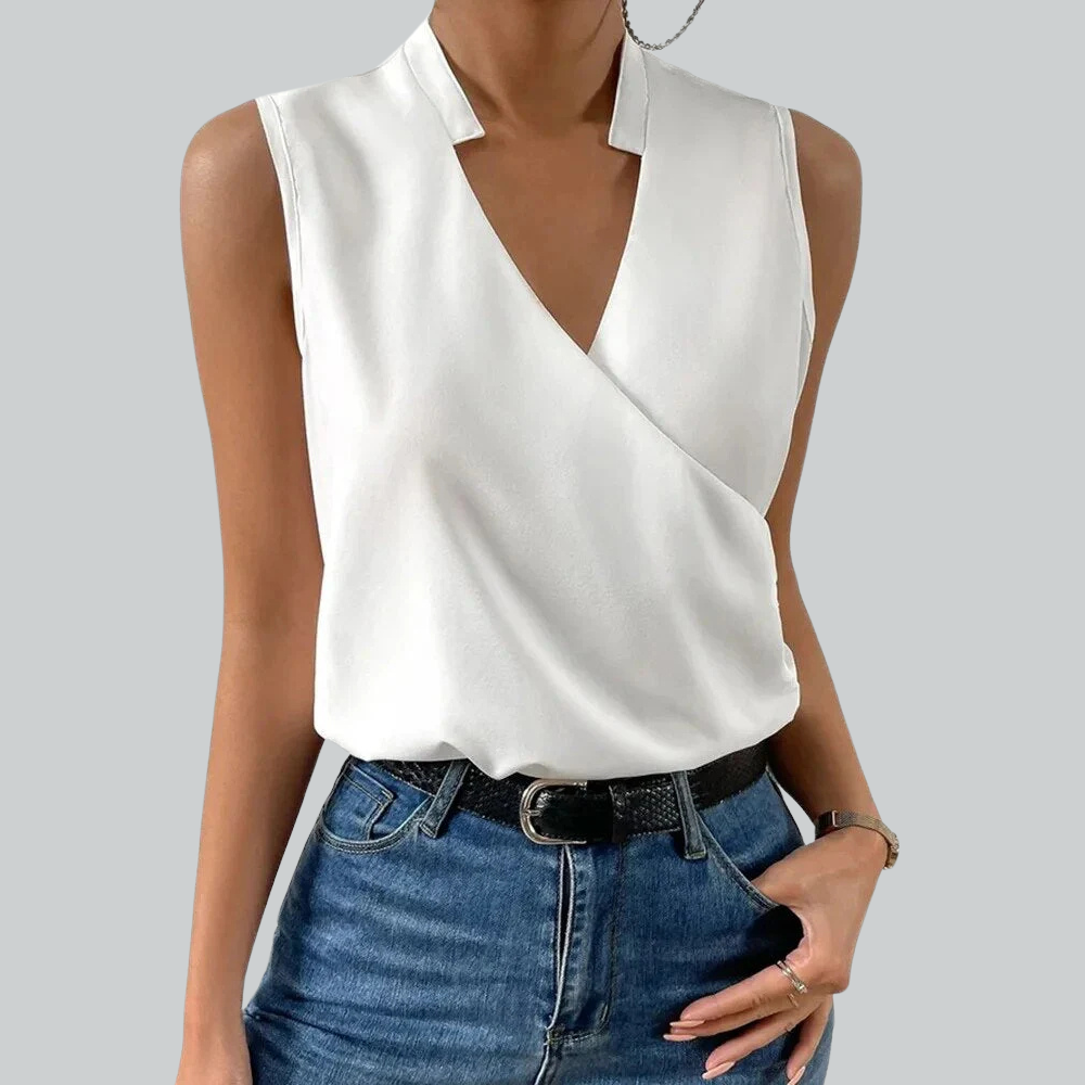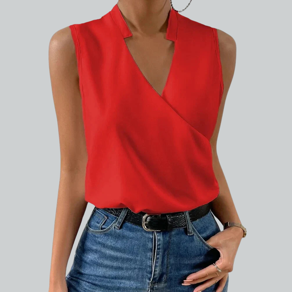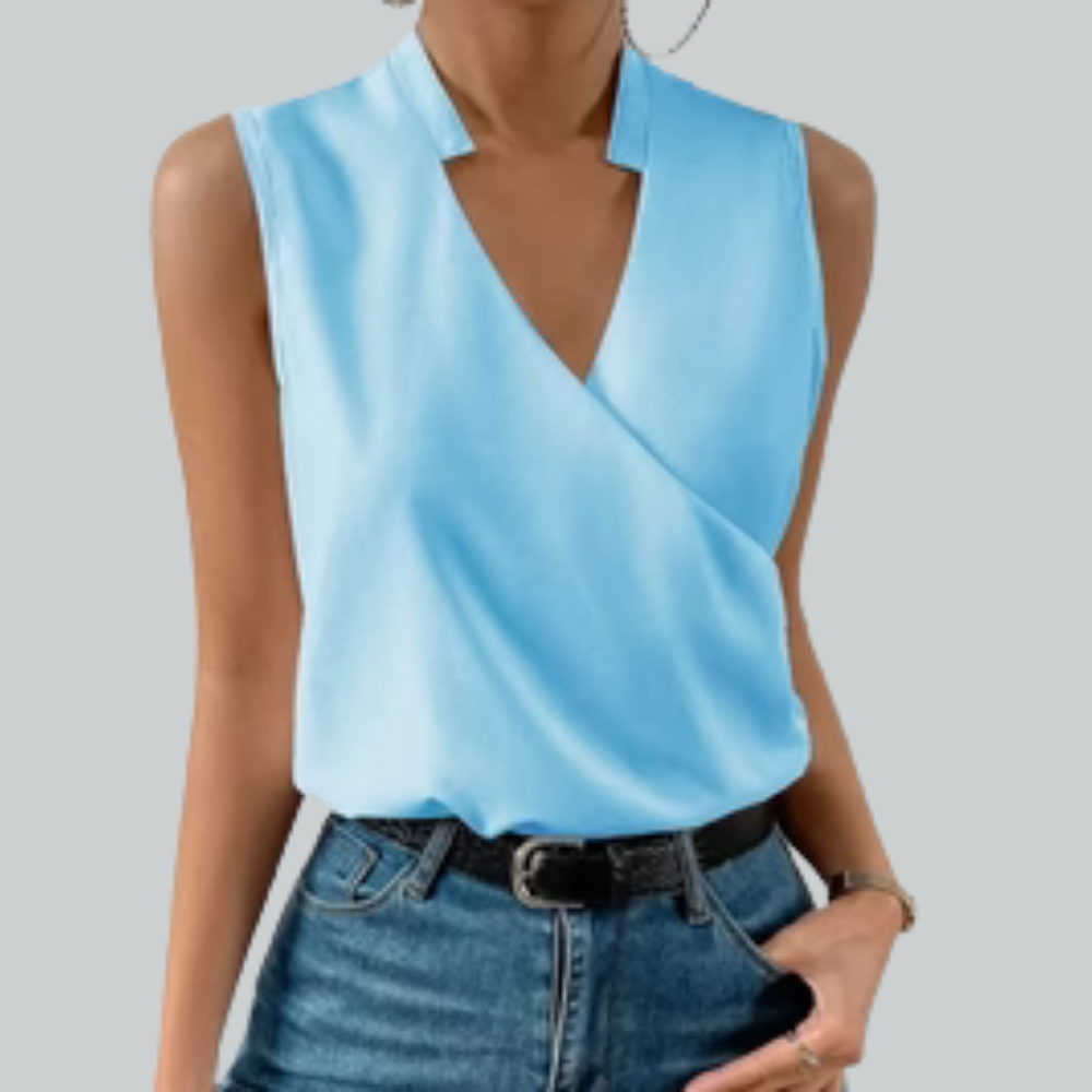 LENAE - Ärmellose Wickelbluse in Schwarz – Zeitlose Eleganz für jeden Anlass