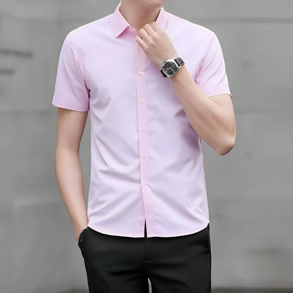 Sein roséfarbenes Hemd bringt Farbe in den Alltag, ohne laut zu sein. Der moderne Schnitt mit Knopfleiste macht es zum Must-have für Männer mit Sinn für Ästhetik.