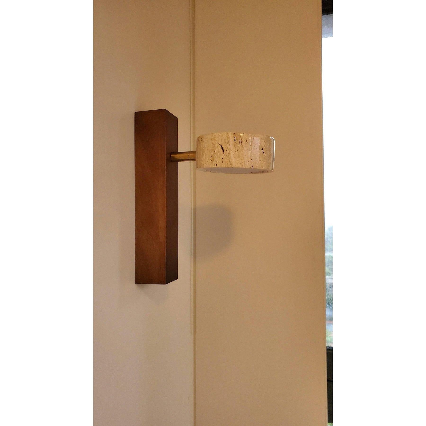 Gefertigt aus echtem Travertin und Massivholz, was jeder Leuchte eine einzigartige Struktur verleiht.