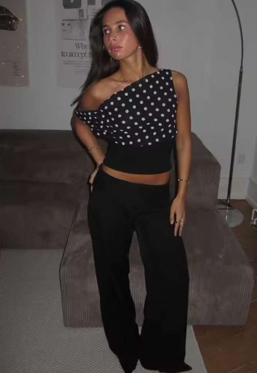 Julissa ist das It-Piece für Frühlingstage voller Leichtigkeit und Selbstbewusstsein. Das schulterfreie Design mit charmantem Punktmuster schmeichelt der Silhouette, während die figurbetonte Bandage-Struktur deine Kurven elegant in Szene setzt. Der offene Rücken mit verspielter Schnürung verleiht dem Look einen Hauch subtiler Verführung – perfekt für Frauen, die gesehen werden wollen.
