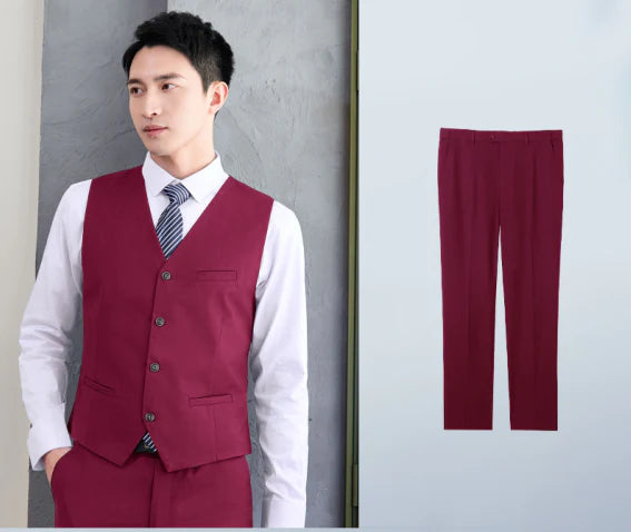 Definieren Sie formelle Kleidung neu mit diesem modernen Hochzeitsgastanzug – einem Zweiteiler, der subtile Eleganz ausstrahlt. Die elegante Kombination aus Weste und passender Hose verleiht dem stilbewussten Gentleman von heute mühelose Klasse. Ob Sie eine Hochzeit besuchen, geschäftlich netzwerken oder einen eleganten Abend genießen – dieser Anzug verleiht Ihnen einen gepflegten und selbstbewussten Auftritt.
