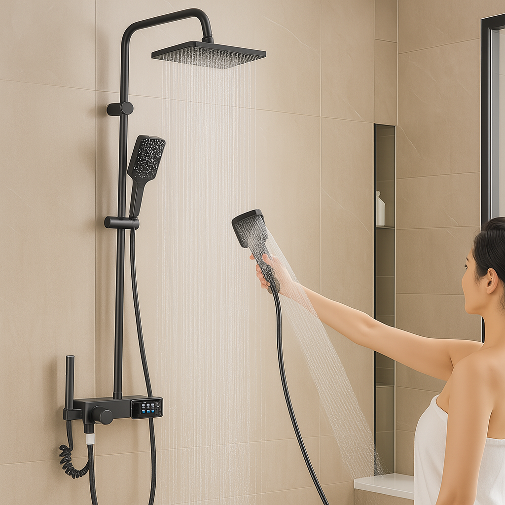 • Regenduschkopf: Bietet ein breites, angenehmes Wasserstrahlbild für entspannende Duschmomente.