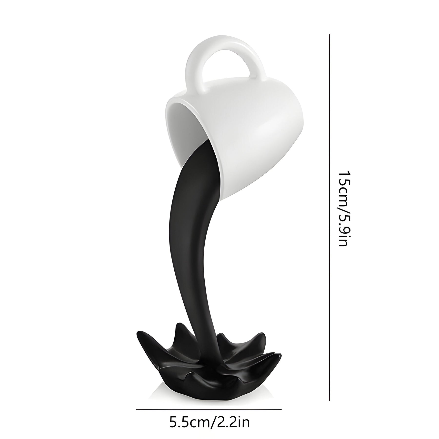 Die Skulptur zeigt eine schwebende Kaffeetasse, aus der scheinbar Kaffee fließt, was eine dynamische und kreative Darstellung Ihrer Kaffeeliebe schafft. -