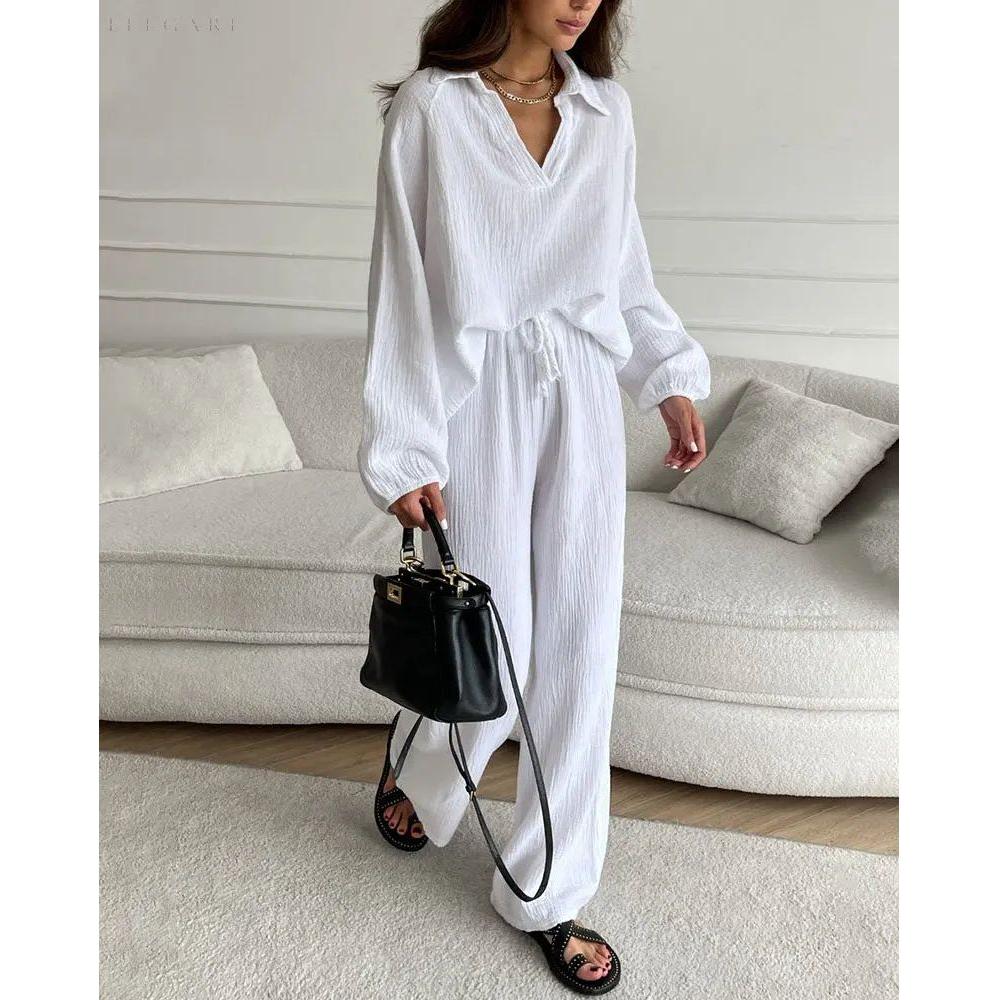 Perfecte Pasvorm: Onze tweedelige set is ontworpen met aandacht voor details en biedt een flatterende pasvorm voor elk figuur. De elastische tailleband van de broek zorgt voor een comfortabele en aanpasbare pasvorm, terwijl de top de natuurlijke vorm van je lichaam accentueert zonder te strak te zitten.