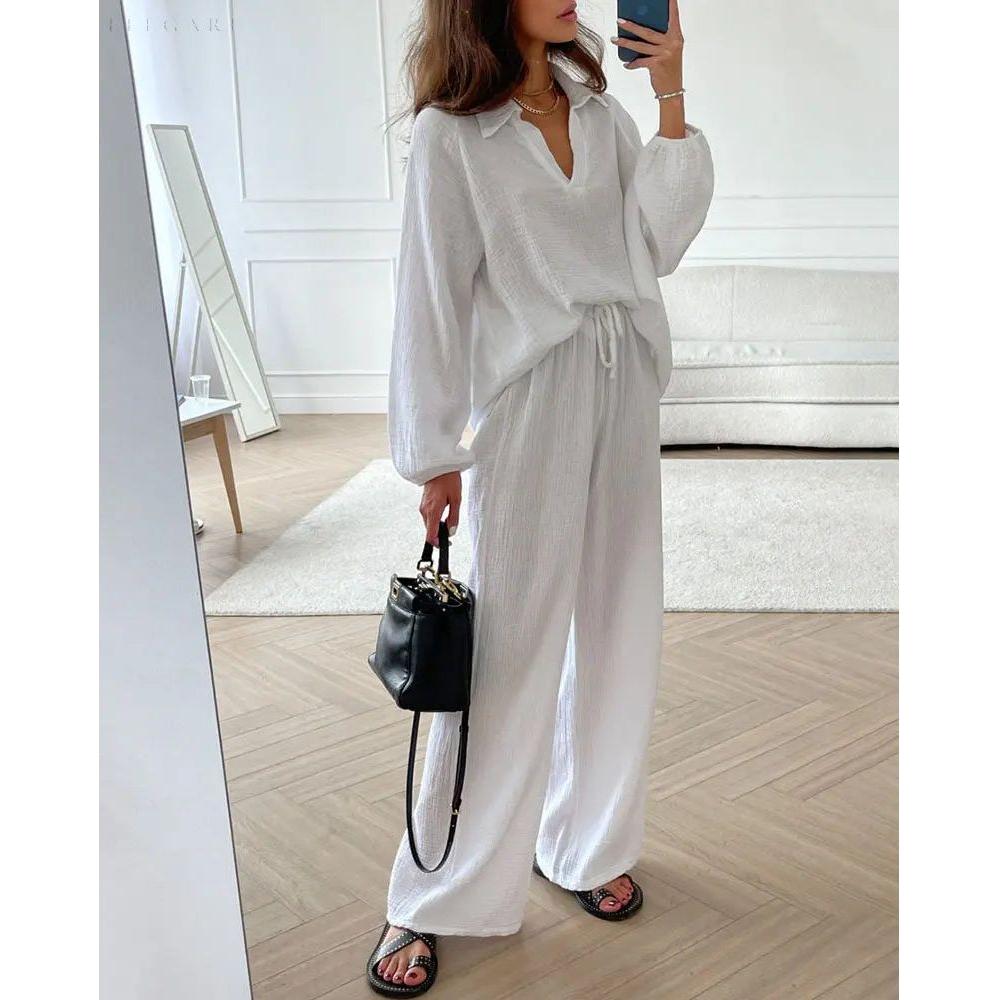 Ben je klaar om te stralen in stijl dit najaar? Ontdek onze tweedelige dames knit set met korte mouwen en bijpassende broek, jouw ultieme herfstoutfit!