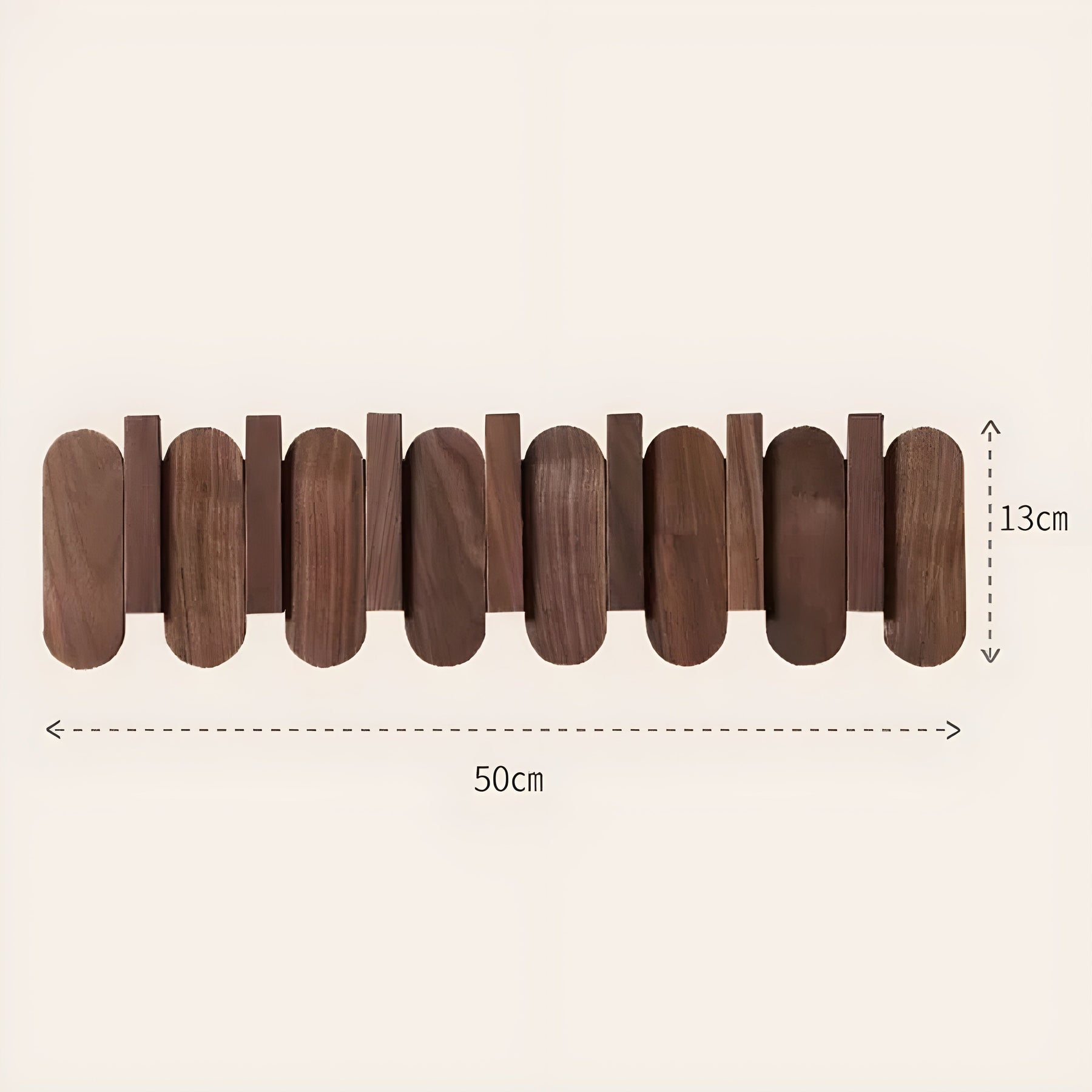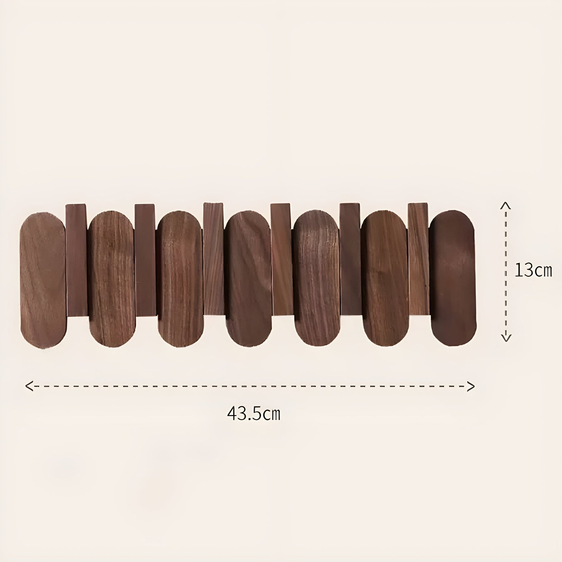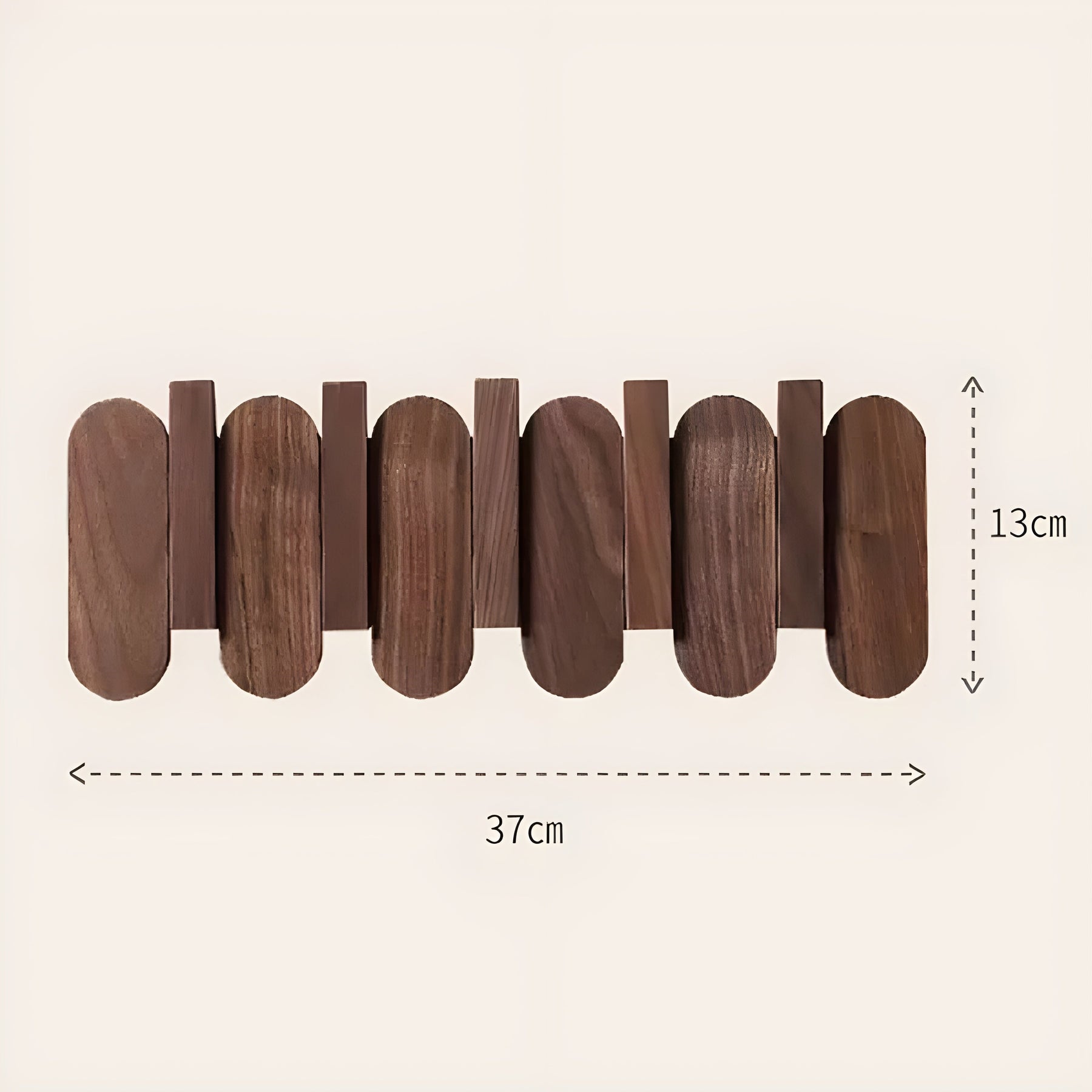 Das OakLine Rack miss und bietet Platz für 3-7 Haken mit einem Lochdurchmesser von 8,5 cm. Bitte beachten Sie, dass bei Produkten aus Naturholz Farb- und Maserungsabweichungen auftreten können, da es sich um ein organisches Material handelt.