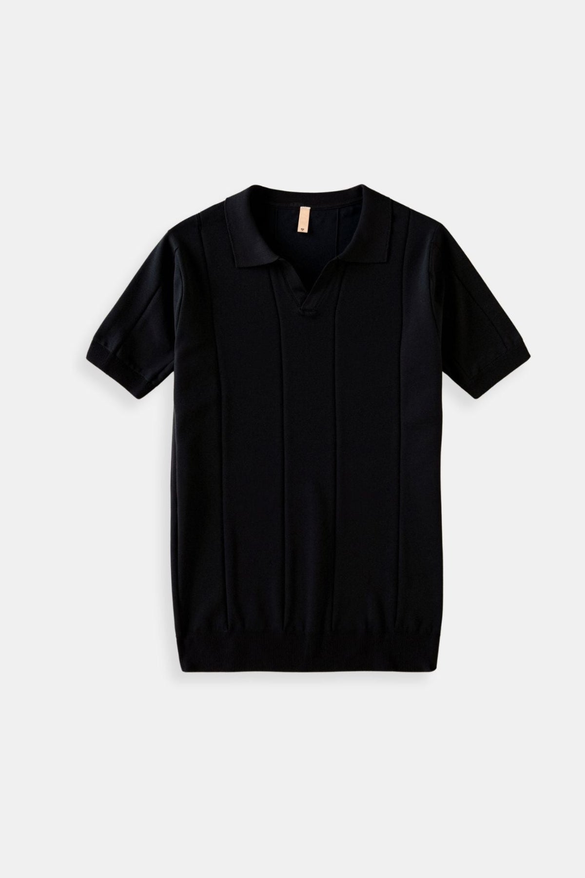 Ein stilvolles Poloshirt mit nostalgischem Flair – dieses fein gestrickte Shirt überzeugt mit seinem klassischen Schnitt und der weichen, hochwertigen Haptik. Die dezente vertikale Struktur verleiht dem Shirt eine elegante Note, während die gerippten Ärmel und der Saum für eine perfekte Passform sorgen. Ideal für lässige Sommerlooks oder als smarter Begleiter für stilbewusste Männer.