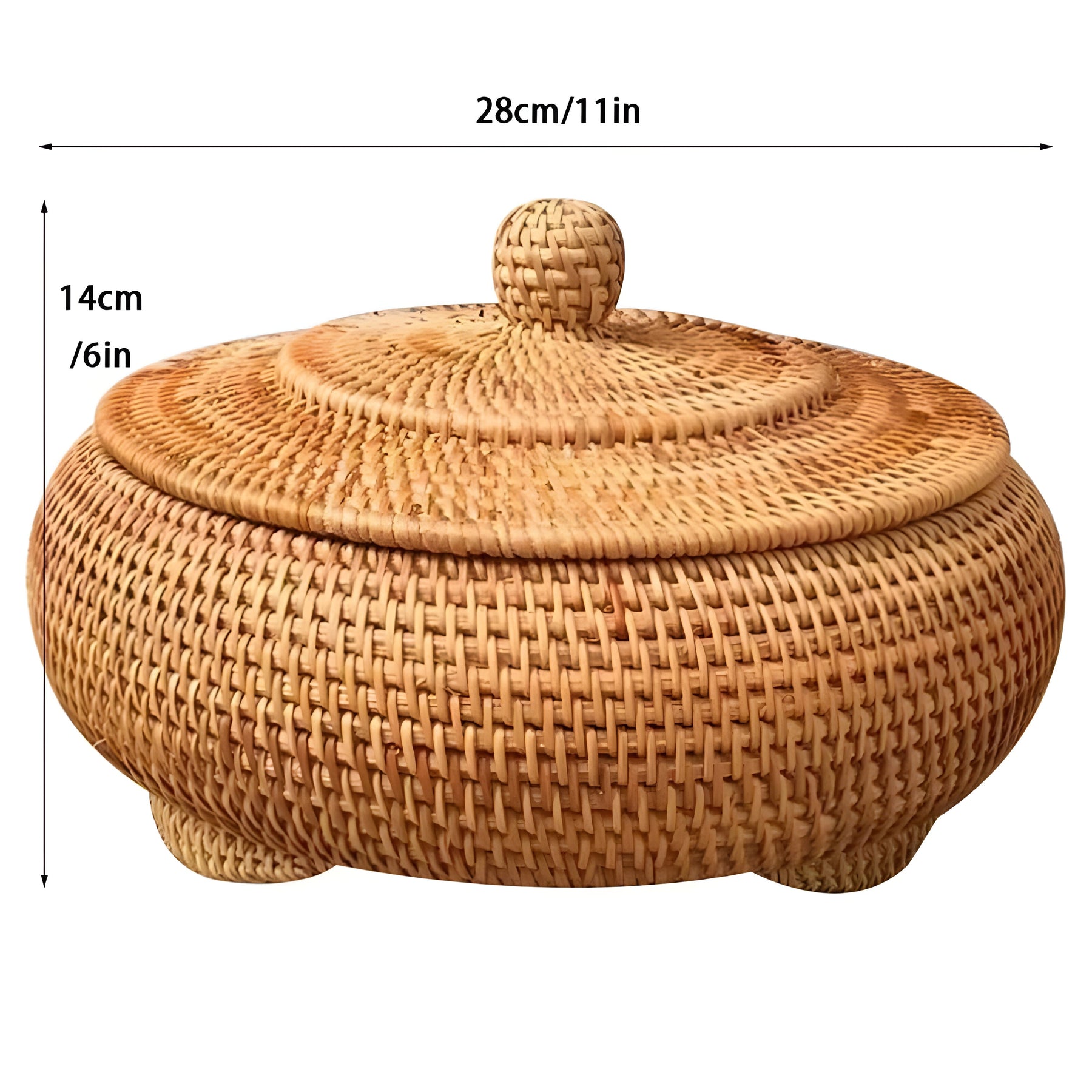 RusticBreeze Basket - Handgefertigte Rattan Aufbewahrungsbox mit Deckel