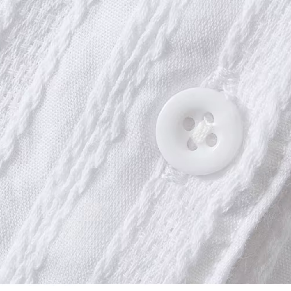 Mit seinem klaren Design und der feinen Streifenstruktur bringt Scarlett frischen Wind in deine Garderobe. Dieses weiße Blusenshirt kombiniert klassische Eleganz mit einem modernen Touch und lässt sich vielseitig stylen – perfekt für Büro-Outfits, City-Looks oder stilvolle Freizeitmomente. Ein echtes Must-have für alle, die zeitlose Mode mit besonderem Detail lieben.