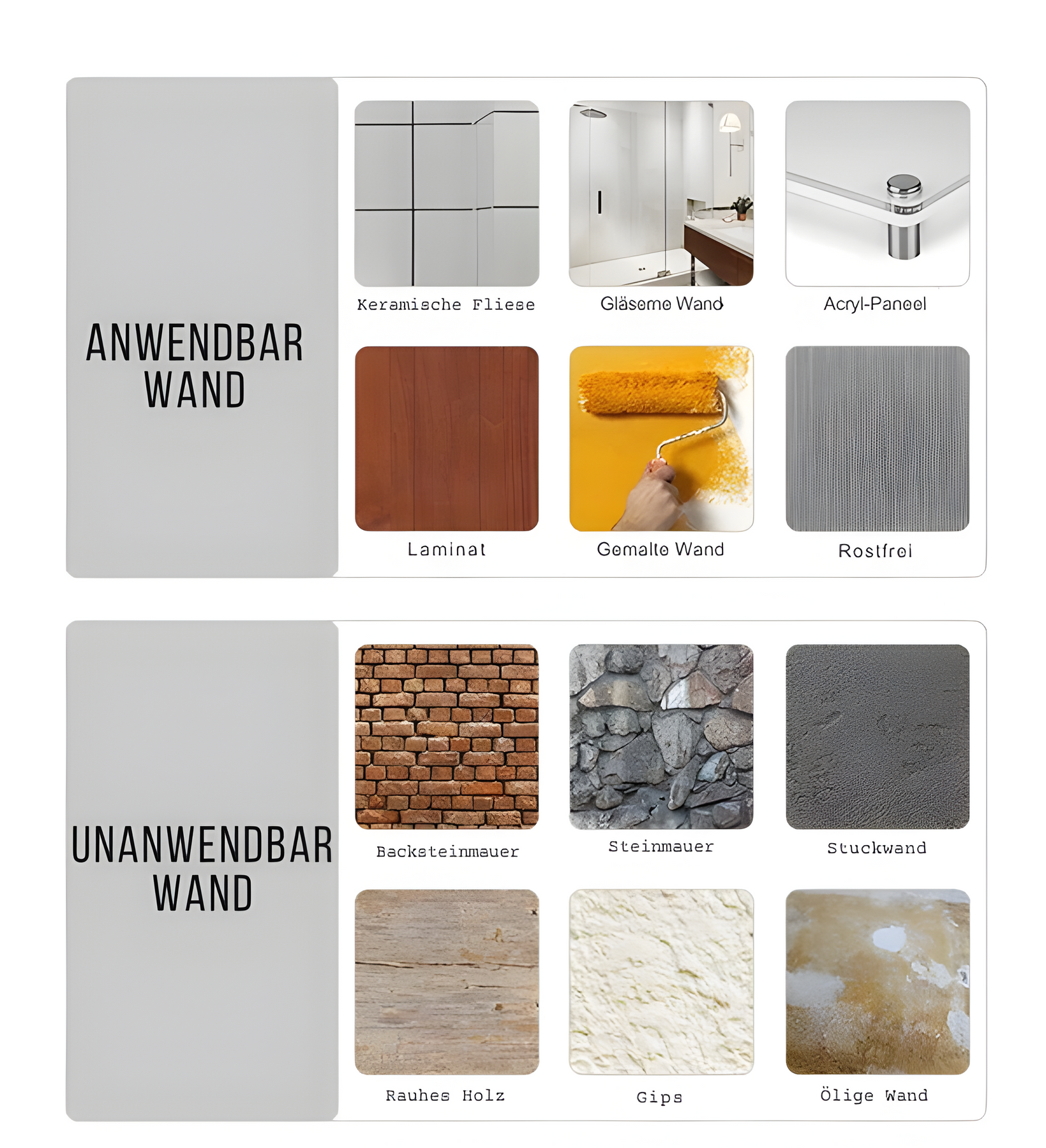 Ideal für Badezimmer, Küchen und andere feuchte Räume. -