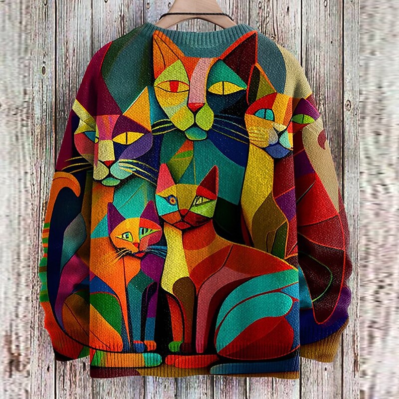 Dieser Strickpullover mit Katzenmuster für Frauen vereint süßes Design mit gemütlichem Tragekomfort. Der Rundhalsausschnitt und die lockere Passform machen ihn zu einem idealen Begleiter für entspannte Tage, während das warme Material dich auch an kühleren Tagen nicht im Stich lässt.