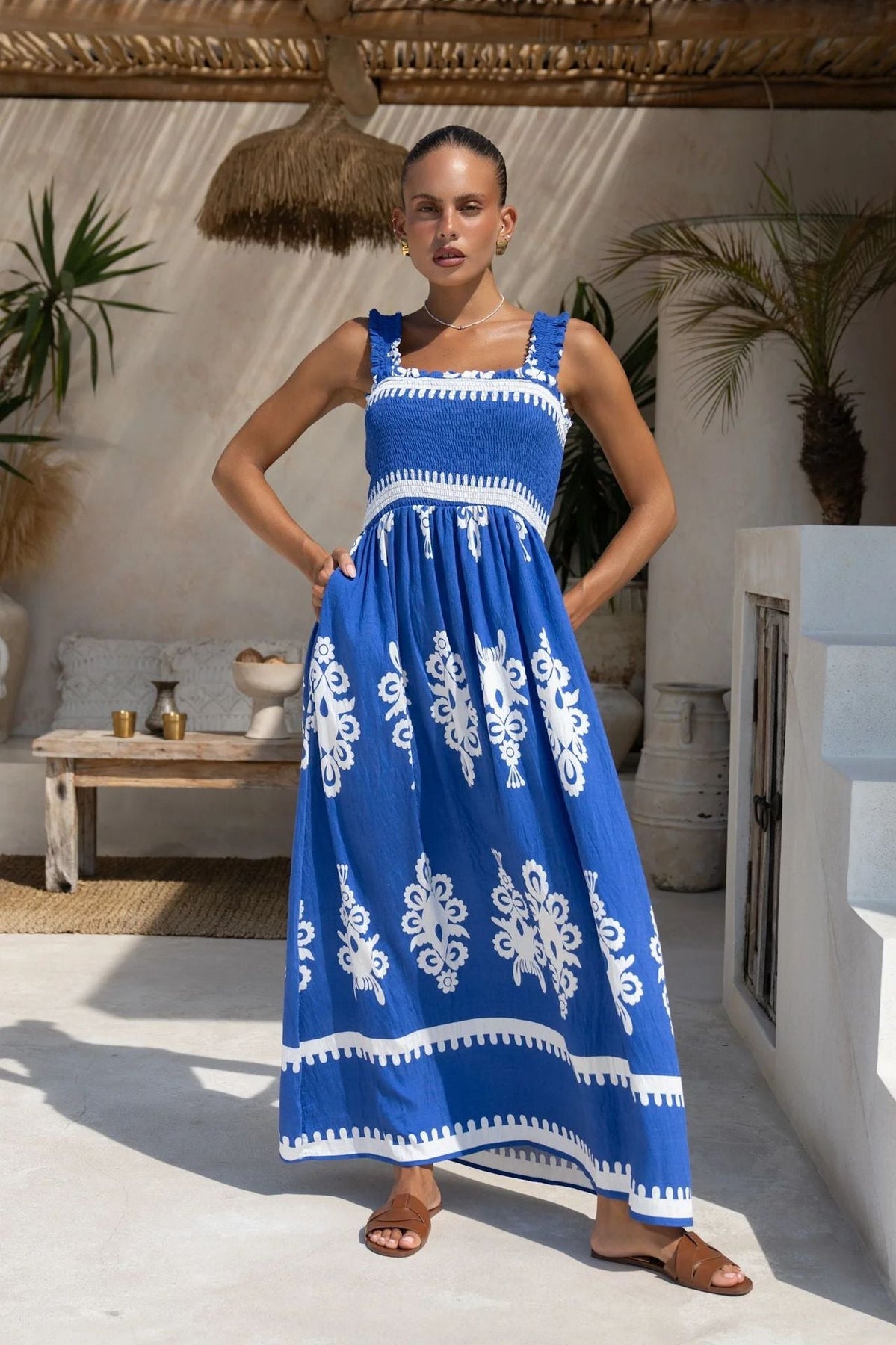 Das Sophie Maxikleid für Damen vereint stilvolles Design mit hohem Tragekomfort. Hergestellt aus leichtem, fließendem Stoff, bietet dieses ärmellose Riemchenkleid eine perfekte Wahl für warme Tage am Strand oder entspannte Urlaubsaktivitäten. Die luftige Passform sorgt für ein angenehmes Tragegefühl, während das elegante Design mühelos zu verschiedenen Anlässen passt.