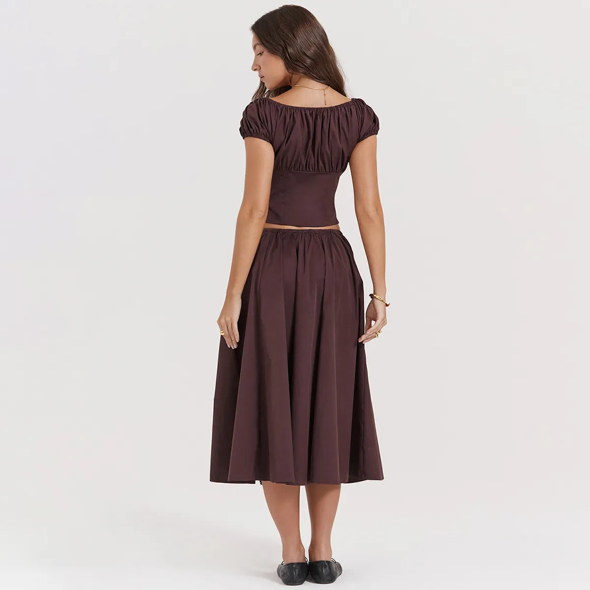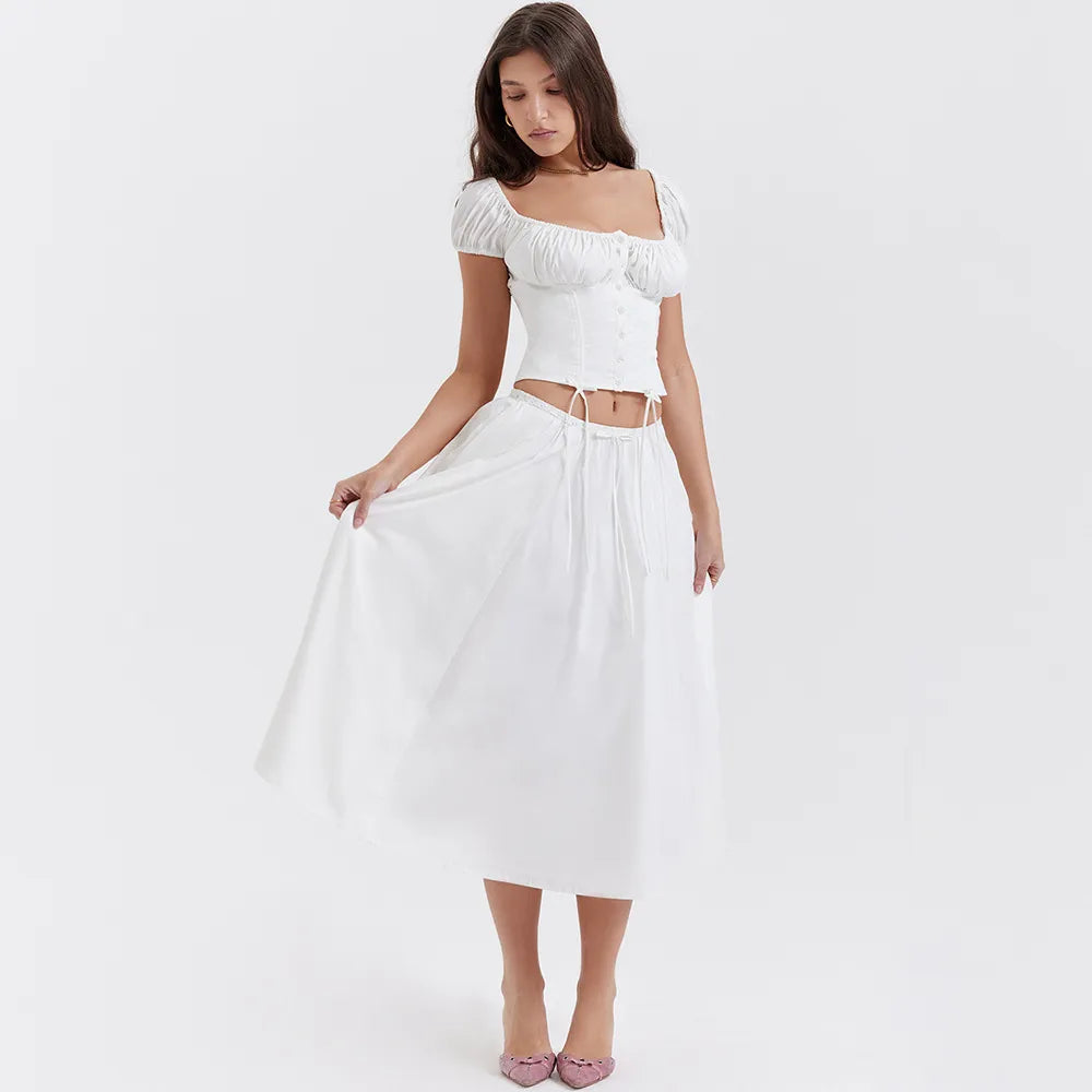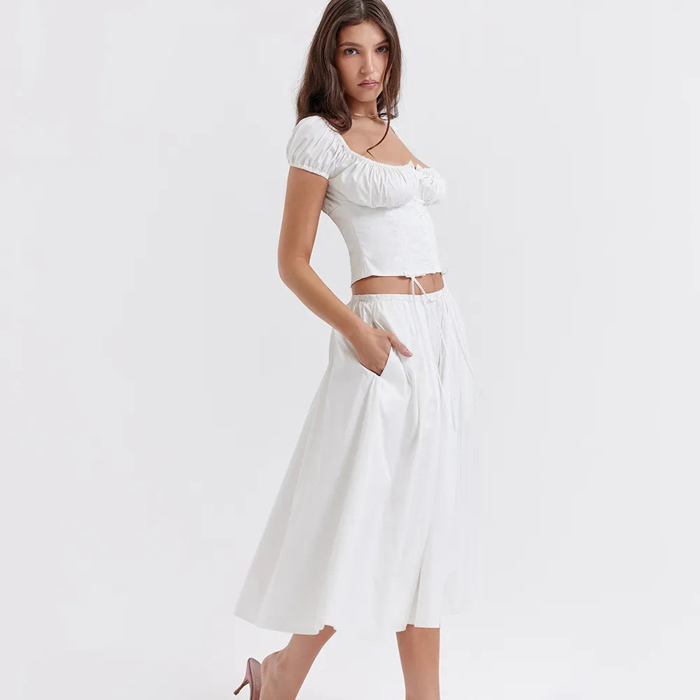 Tania - Puffärmeliges Top mit quadratischem Ausschnitt & Rock-Set