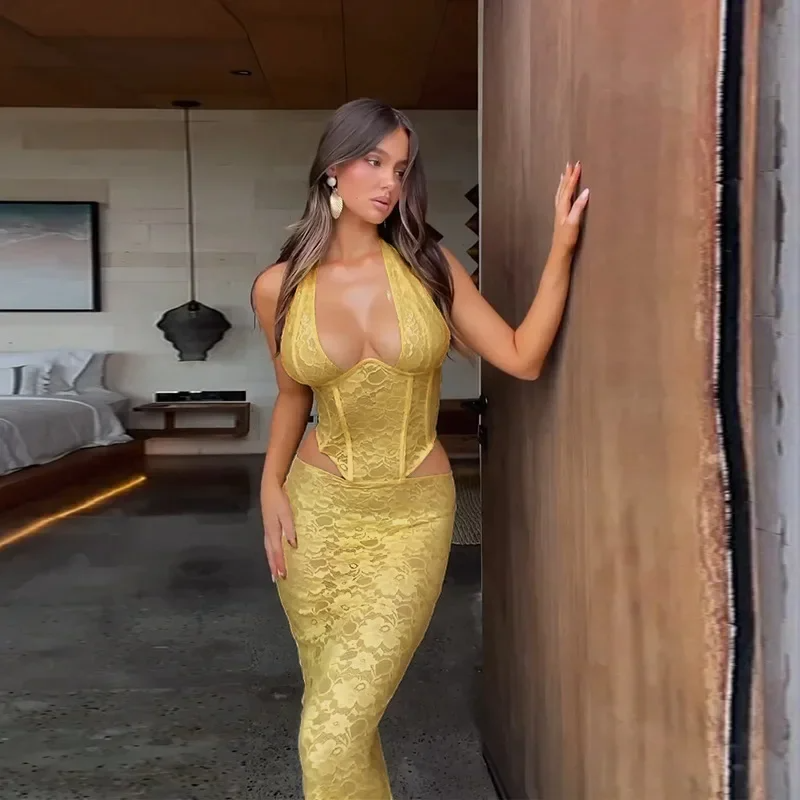 Elegante Spitzendetails, hohe Hüftschlitze und eine schicke Neckholder-Schleife sorgen für die perfekte Balance aus Raffinesse und Verführung. Verstellbar für eine individuelle, selbstbewusste Passform.