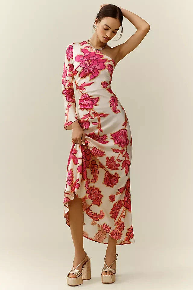 Valentina - Langes geblümtes Kleid mit einer Schulter