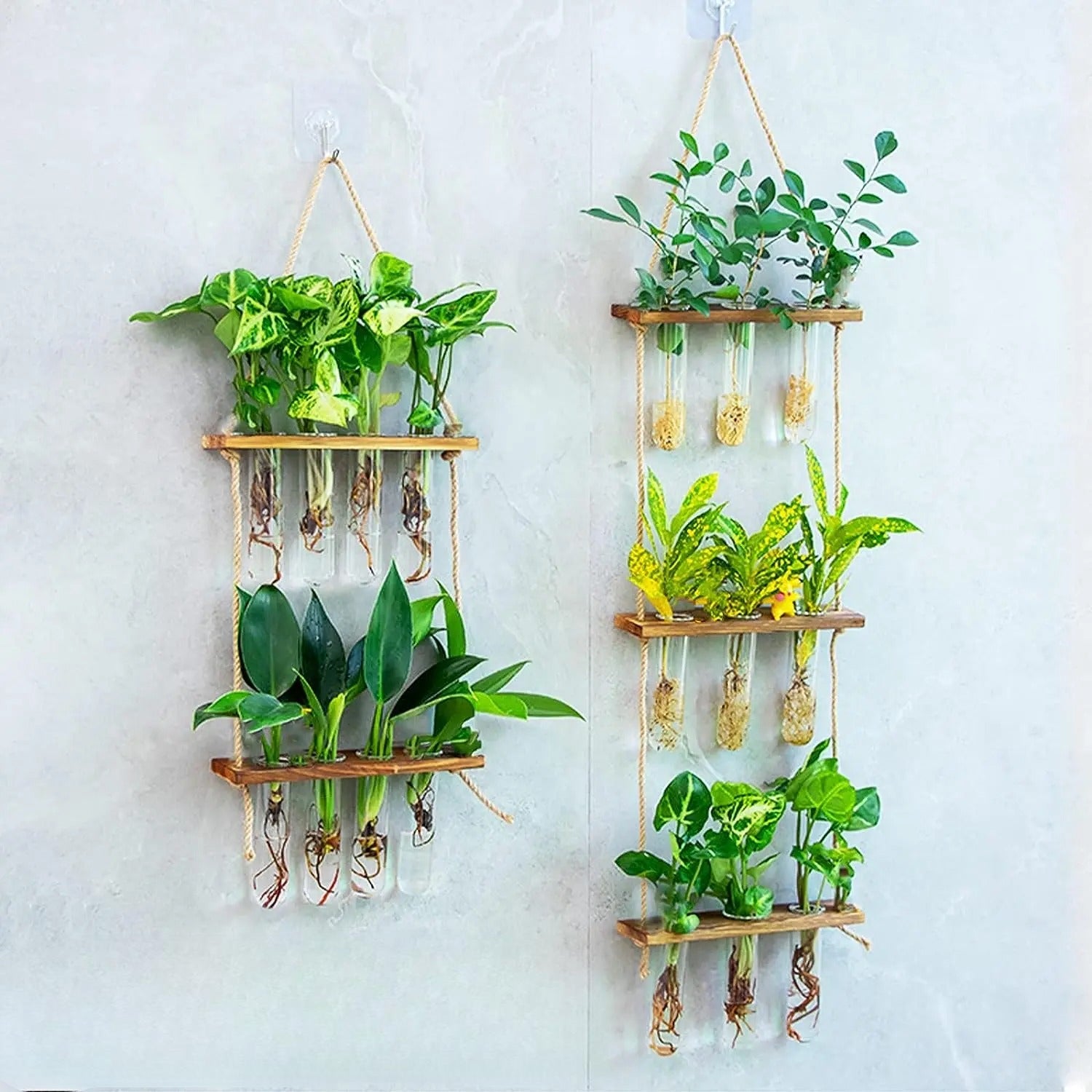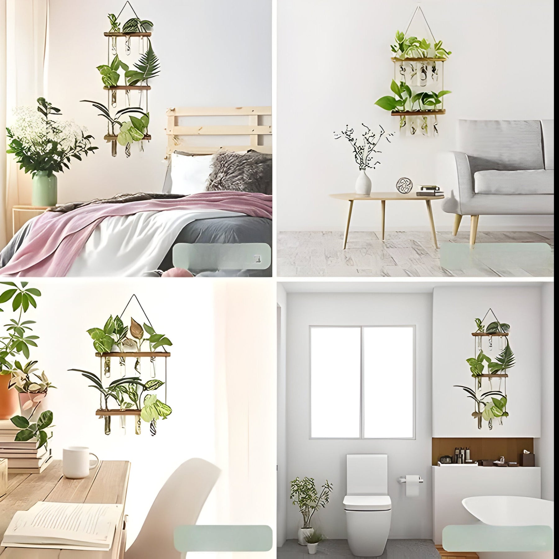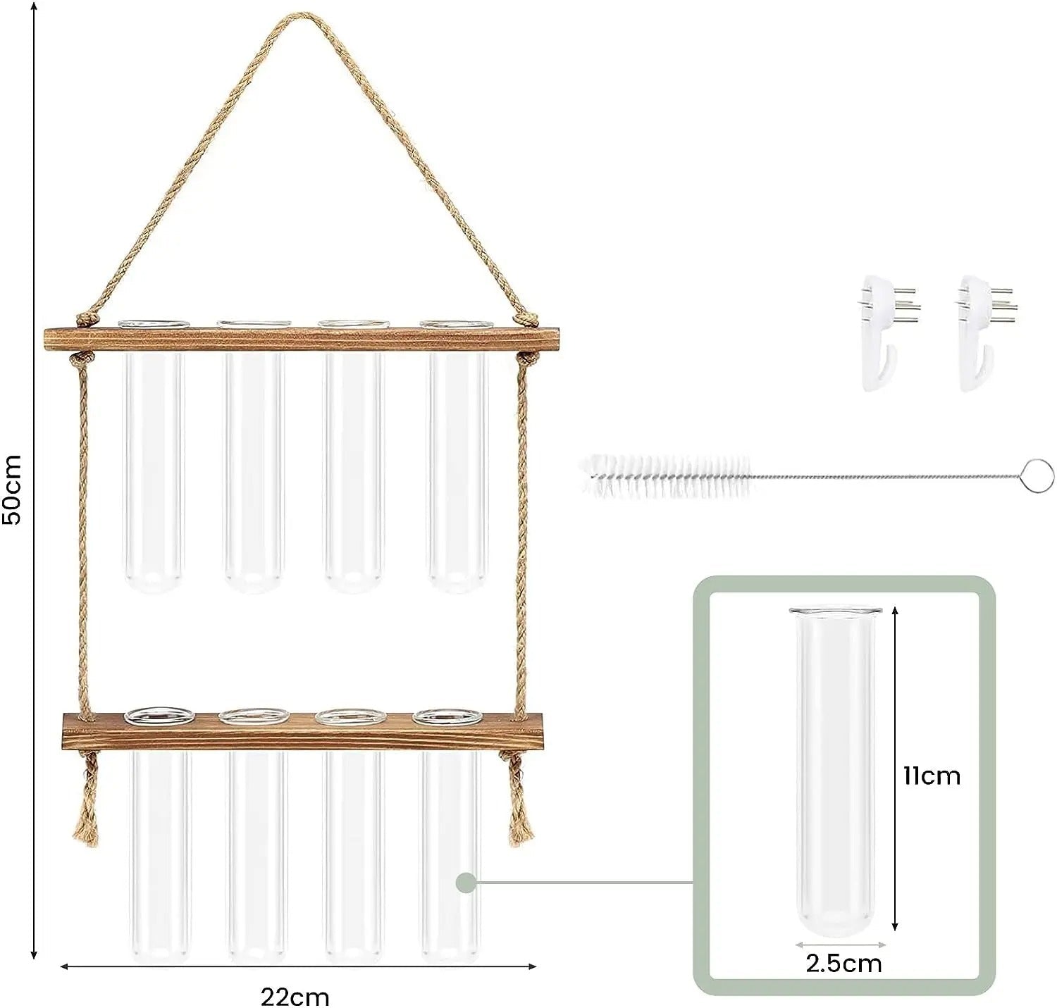 Bringen Sie die Natur in Ihr Zuhause mit dem VerdantFlow Vase - 2-stufigen hölzernen hängenden Reagenzglas-Pflanzer!