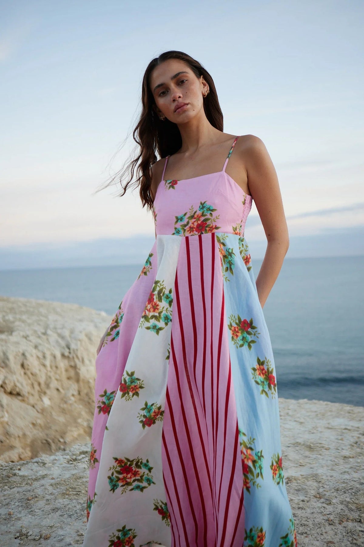 Maxikleid für Frauen mit Spaghetti-Riemen und Graffiti-Druck