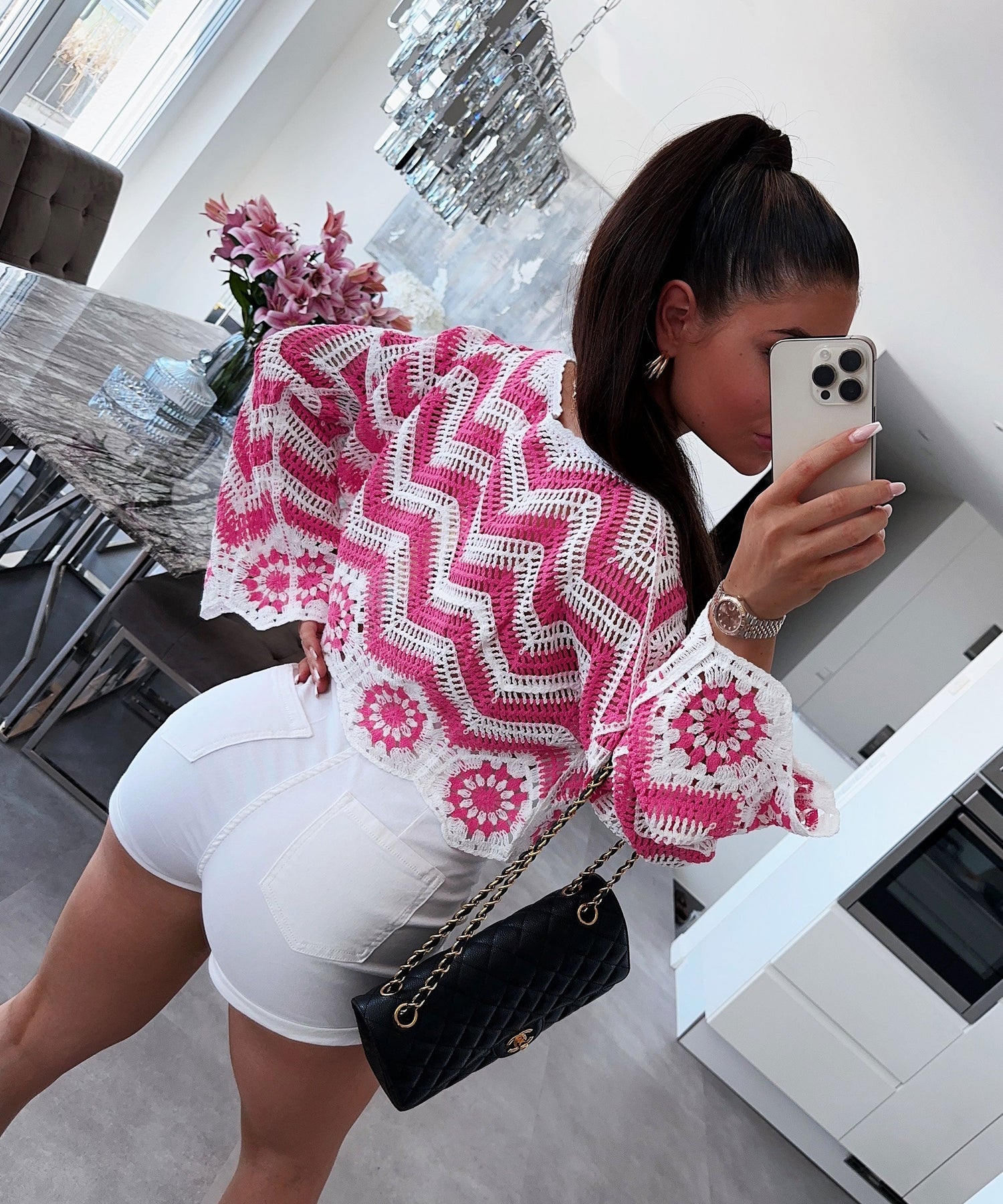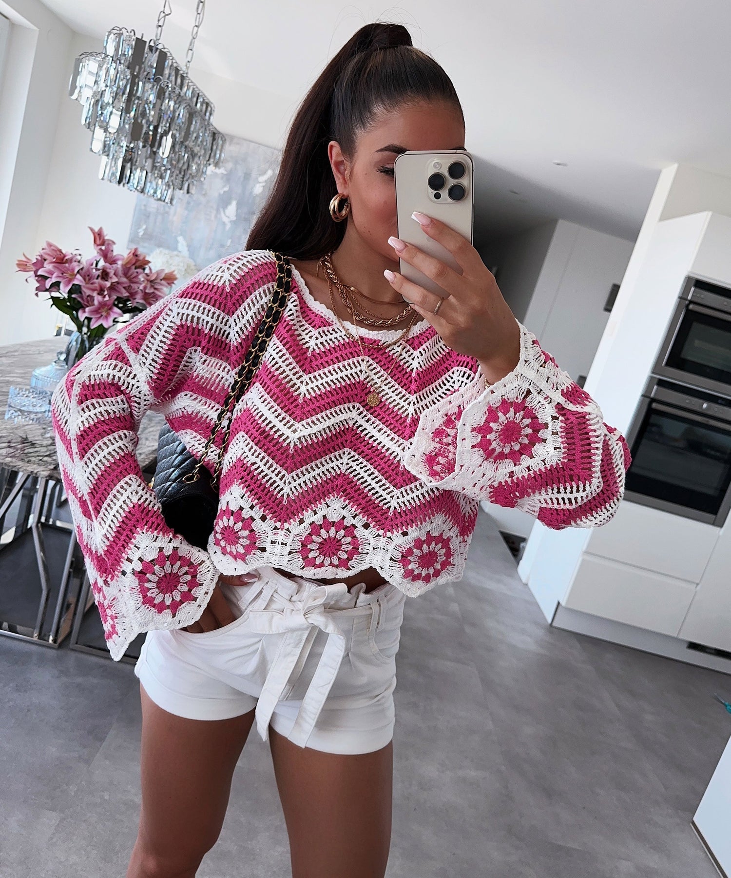 Dieses rosa Oberteil verleiht jedem Outfit eine sanfte, feminine Note und bringt Leichtigkeit und Frische in den Look – perfekt für Frühlingsoutfits, entspannte Chic-Looks oder leichte Lagen-Styles. Ideal für Frauen, die zarte, elegante Mode lieben.